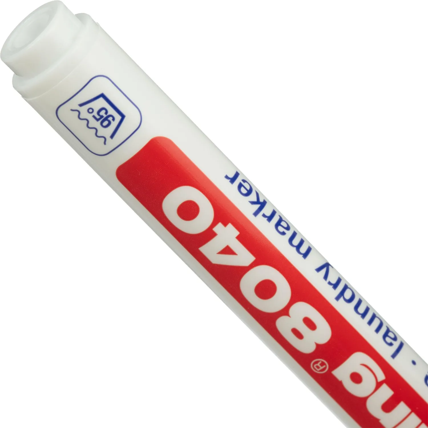Корпус выполнен из пластика классической формы, длина изделия составляет 144 мм. Маркер не имеет выраженного запаха, не стирается после нанесения и устойчив к перепадам температур. Он удобен для применения в быту и профессиональной сфере: для маркировки детских вещей, предметов в образовательных учреждениях или текстиля в больницах. Температура маркировки: от −10°С до +400°С. Температура поверхности: от 0°С до + 40°С.