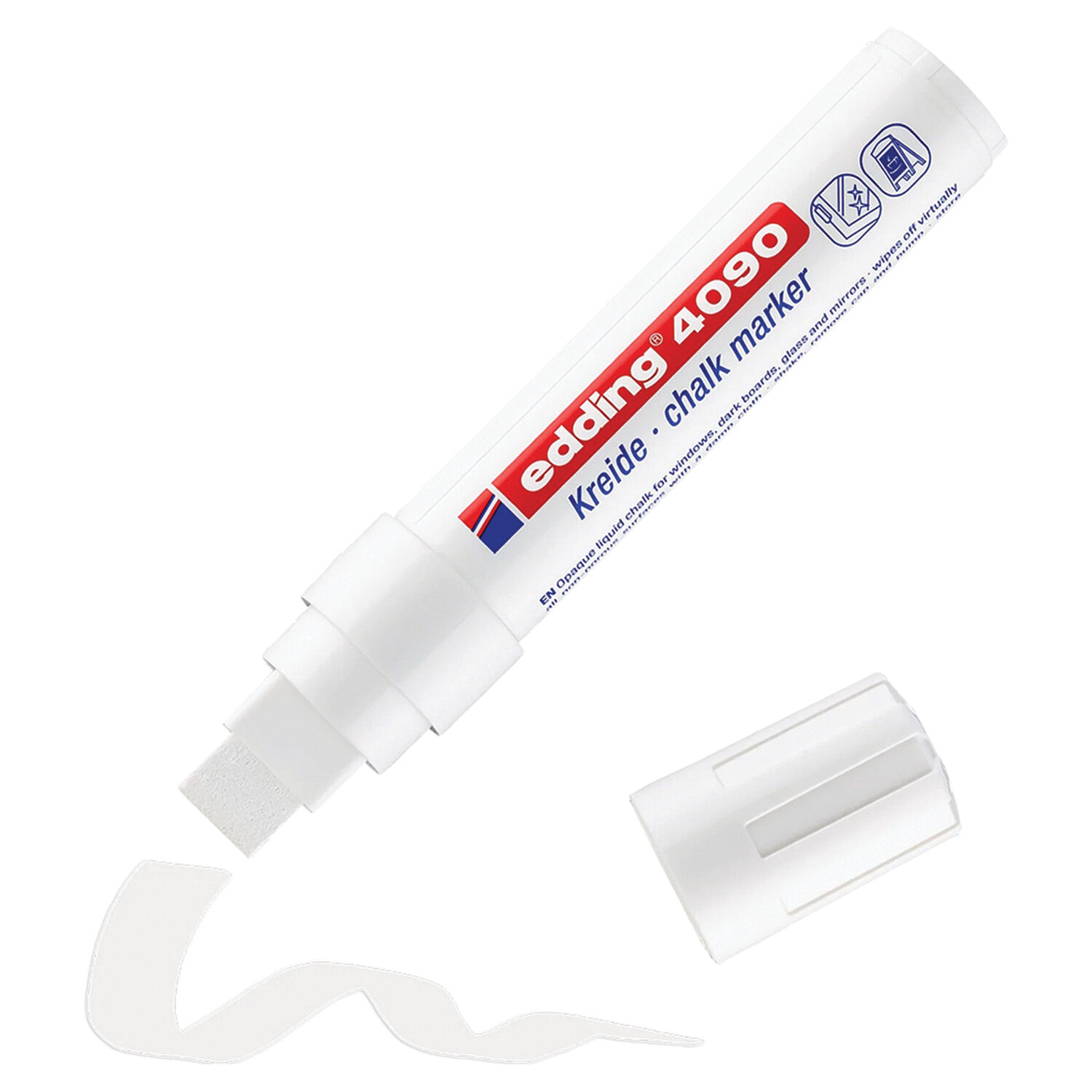 О товаре «Маркер меловой Edding E-4090/049 белый прямоугольный наконечник (толщина линии 4-15 мм)»