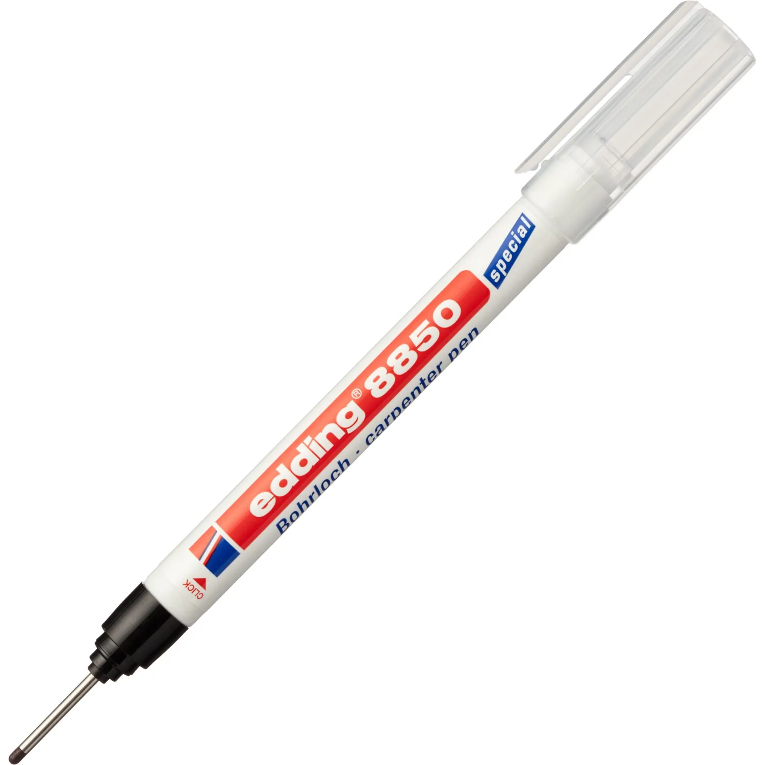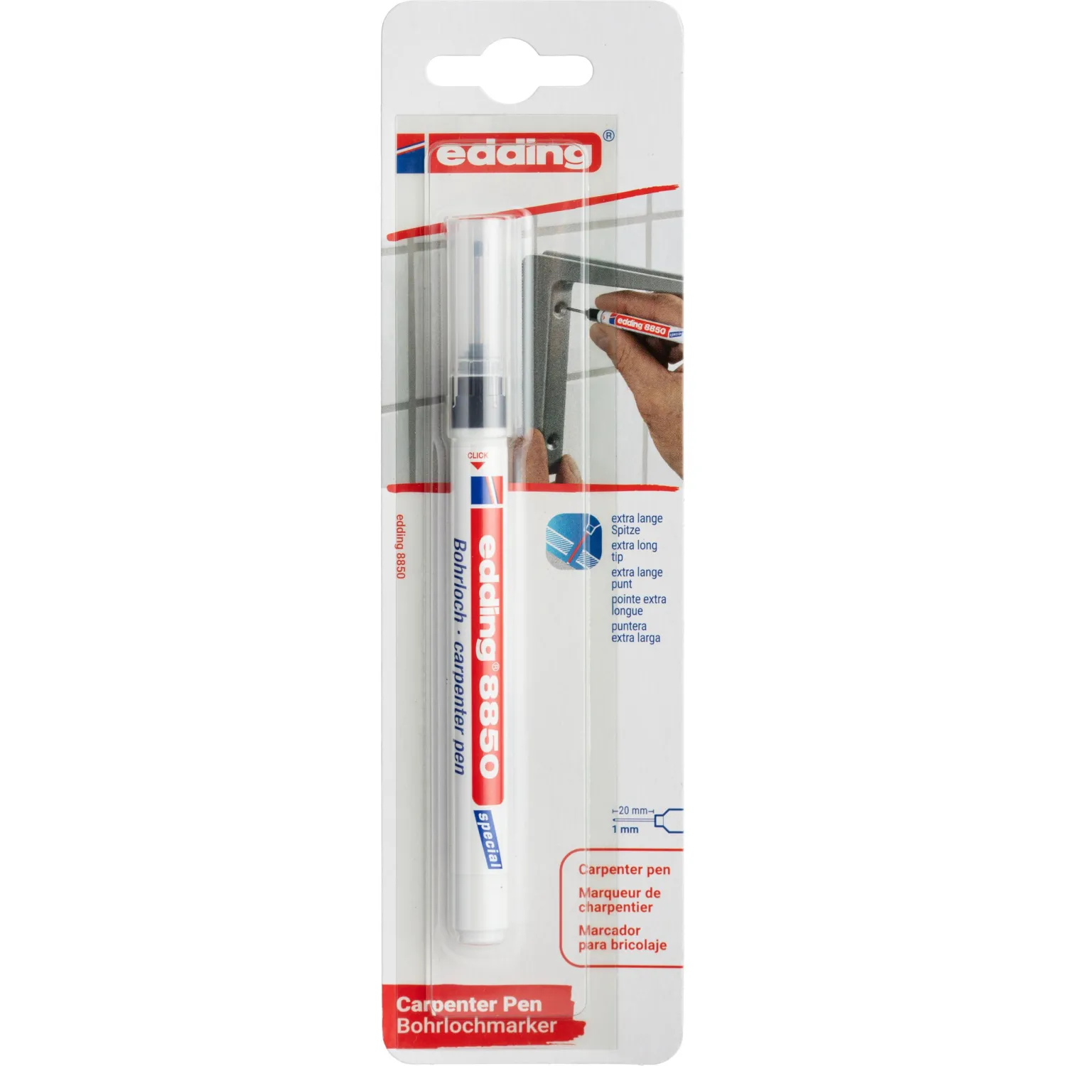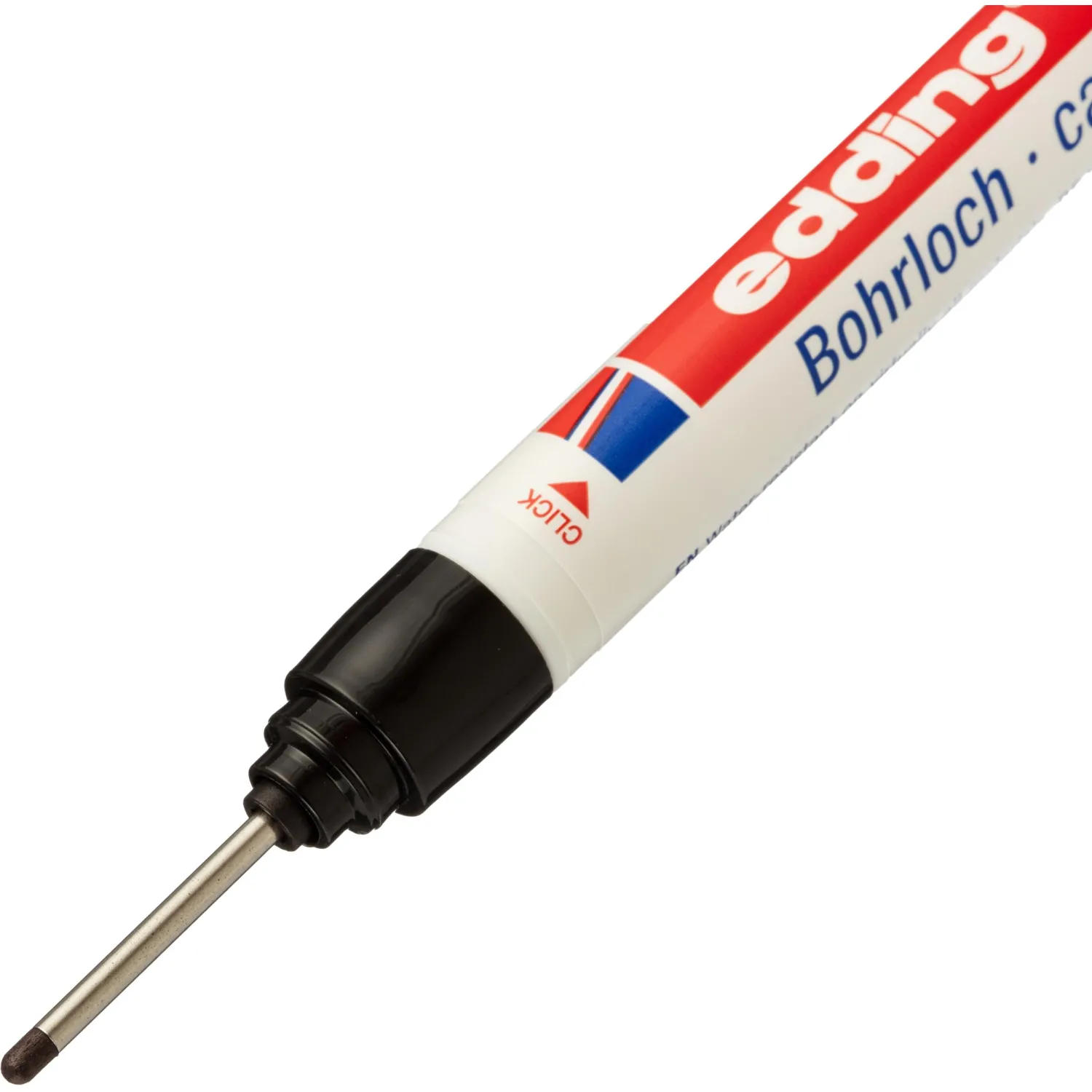 Промышленный перманентный маркер с чёрными чернилами предназначен для маркировки труднодоступных мест. Он оснащён тонким и длинным пишущим узлом (20 мм), который позволяет легко наносить точные надписи и разметки в местах, куда обычный маркер или карандаш не могут достать. Идеально подходит для разметки позиций для сверления под крепёж или электропроводку, а также для работ по сборке изделий, например, мебели или шкафов-купе, где требуется точная маркировка в уже частично собранных конструкциях.
