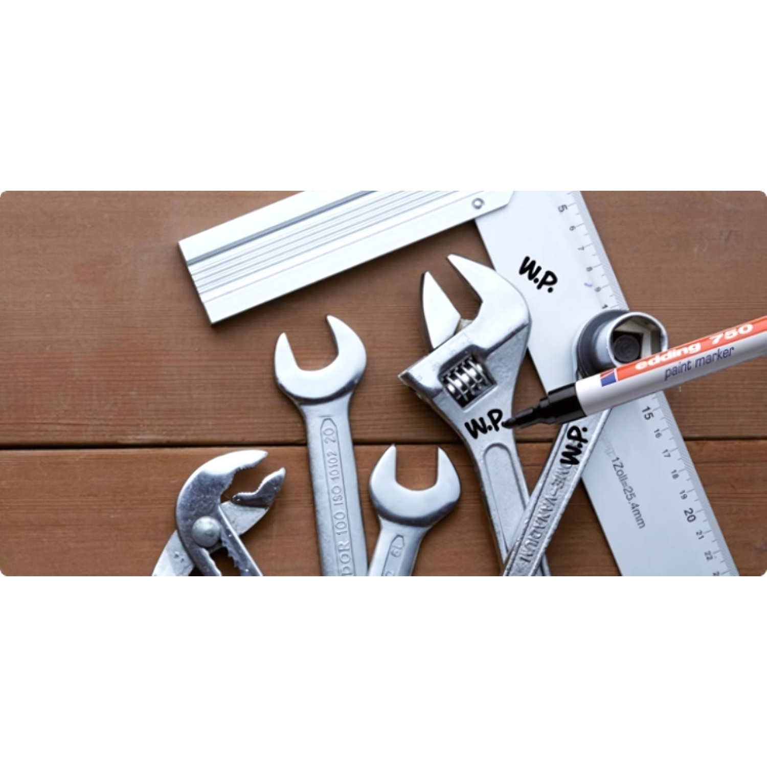 Маркер оснащён клапанным механизмом подачи чернил, что исключает растекание и разбрызгивание краски, а также обеспечивает ровную линию. Наконечник маркера имеет диаметр от 2 до 4 мм, что подходит для точных и заметных надписей на различных материалах. Корпус маркера выполнен из прочного алюминия, что делает его долговечным и надёжным.