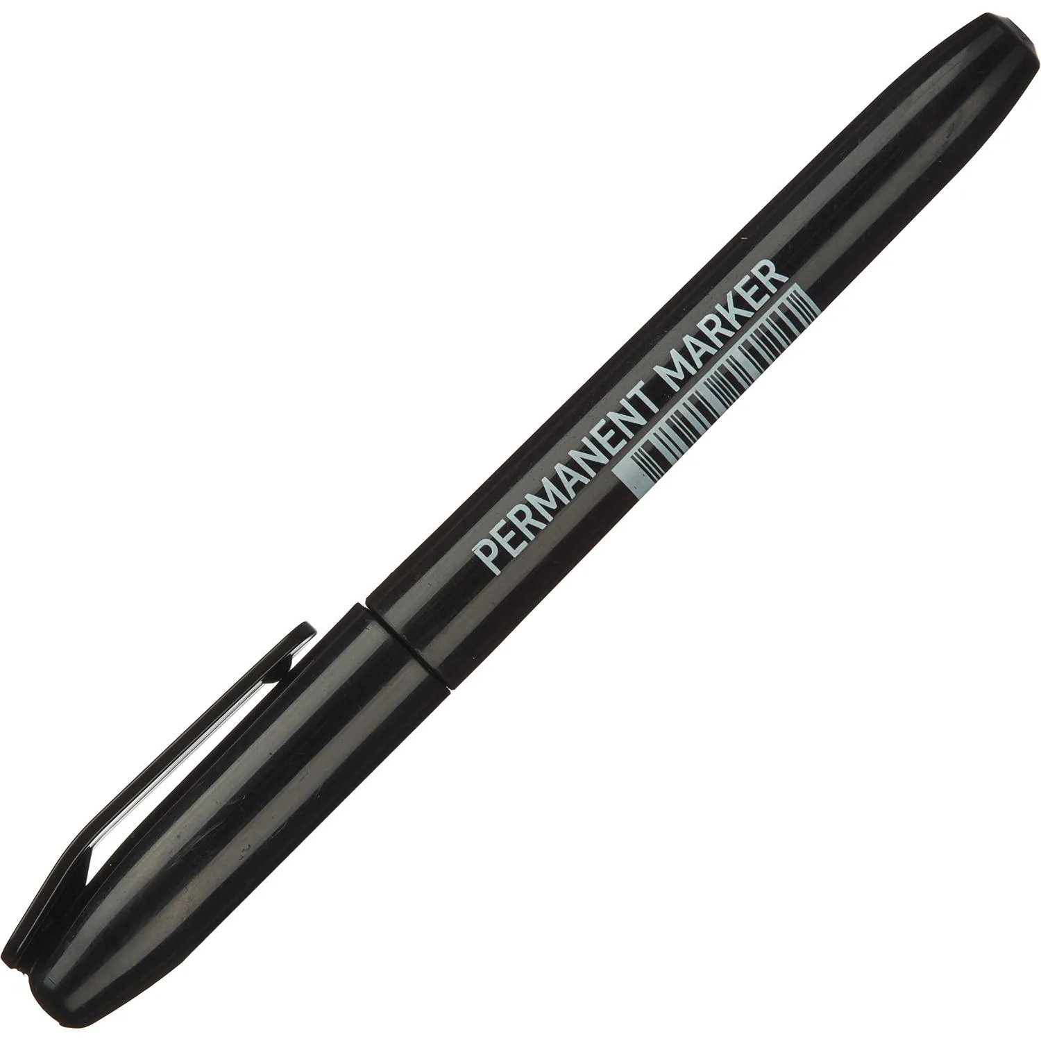 Перманентный маркер подходит для письма на любых поверхностях. Эргономичный корпус изготовлен из пластика. Наконечник круглой формы обеспечивает толщину линии 2 мм. Нестираемые чернила обладают повышенной светостойкостью. Цвет — черный.