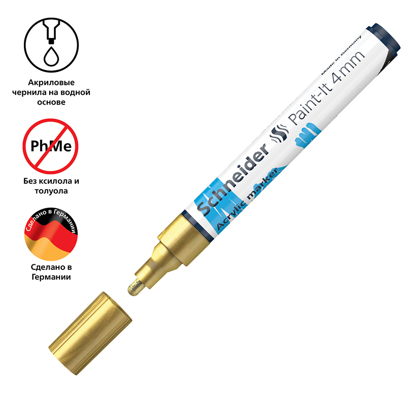 О товаре «Маркер акриловый Schneider "Paint-It 320" 4мм, пулевидный, золотой»