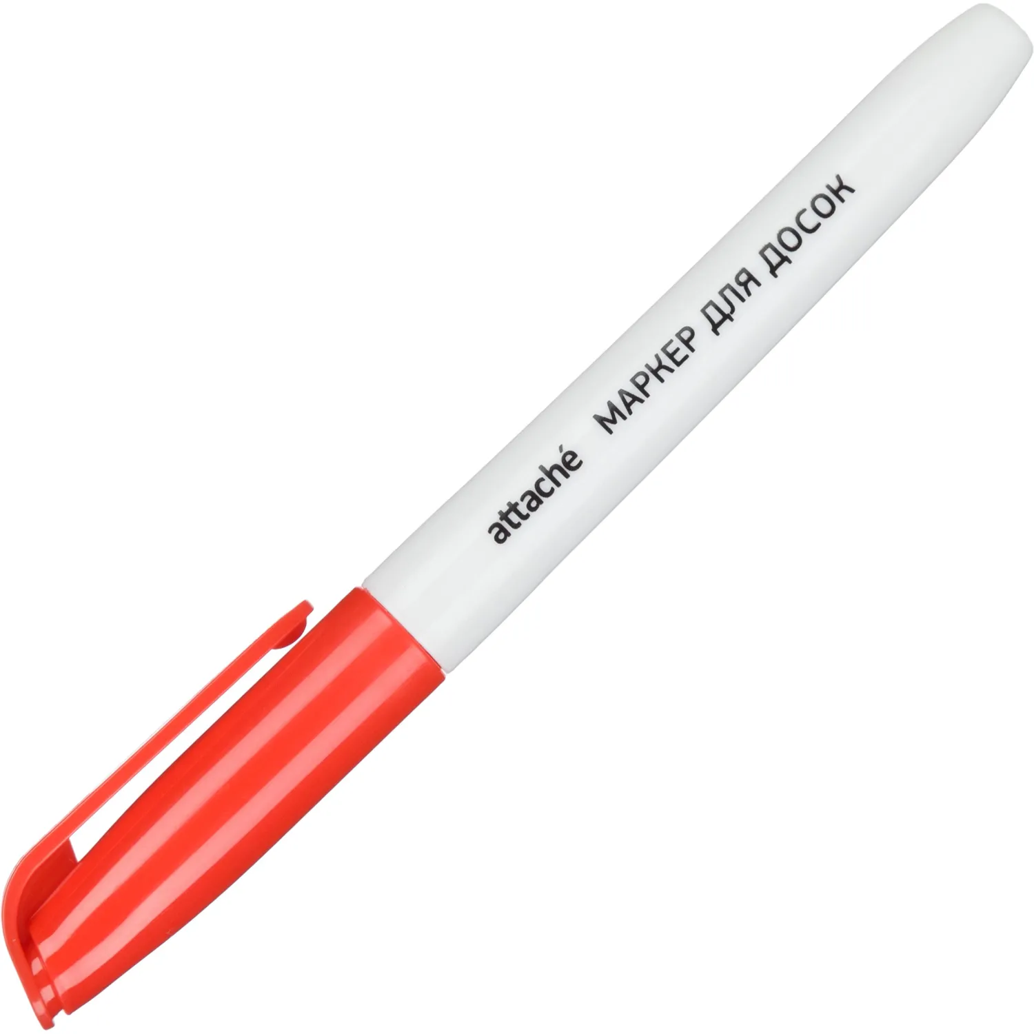 Маркер для досок с круглым наконечником в пластиковом корпусе. Толщина линии письма 1-3 мм, в зависимости от силы нажатия на маркер и угла нанесения линия. Цвет — красный. Стирается сухой губкой. Маркер предназначен для письма на белых эмалевых досках. Стирается cухим способом почти со всех гладких поверхностй, таких как эмаль, стекло, пластик. Чернила на спиртовой основе.