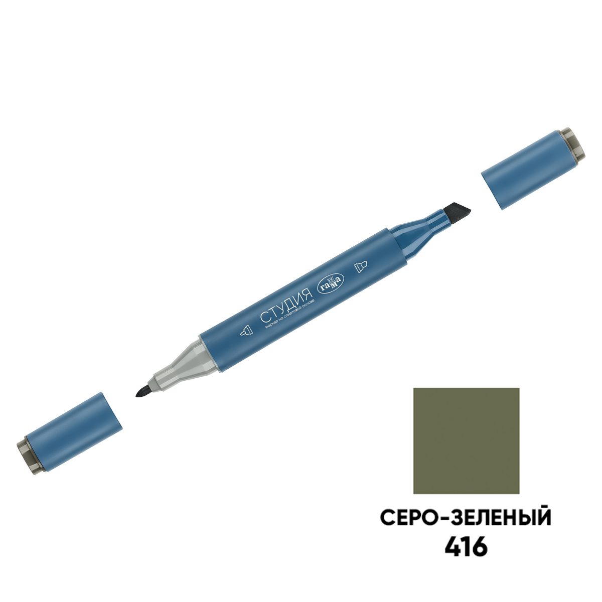 Маркер двусторонний для скетчинга Гамма "Студия", серо-зеленый, корпус трехгранный, пулевид./клиновид. наконечники