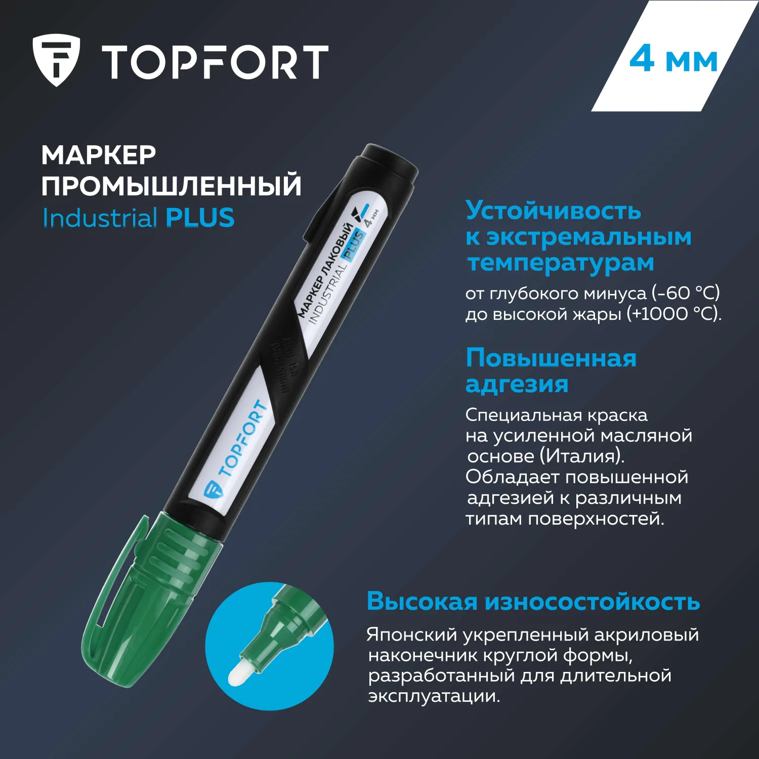 О товаре «Маркер промышленный лаковый TOPFORT Industrial Plus для агрессивной среды зелёный 3-4 мм (2096991)»
