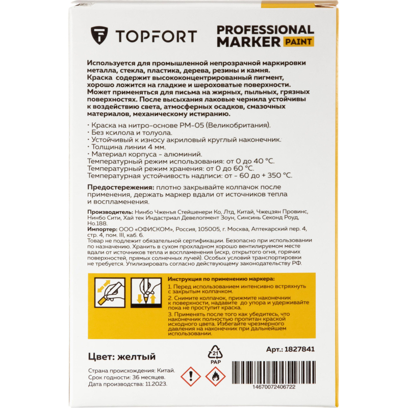 О товаре «Маркер промышленный TOPFORT Paint для универсальной маркировки желтый 4 мм»