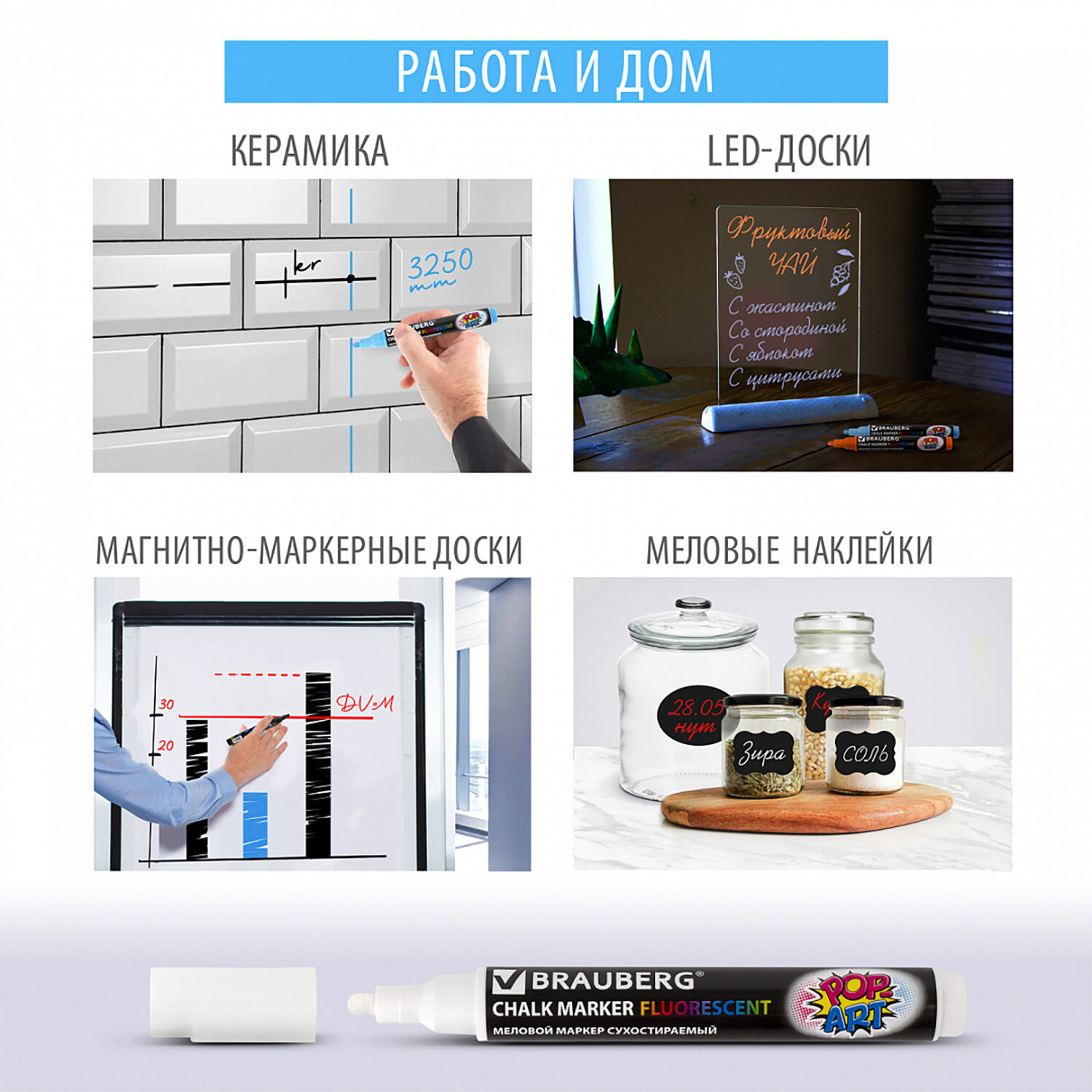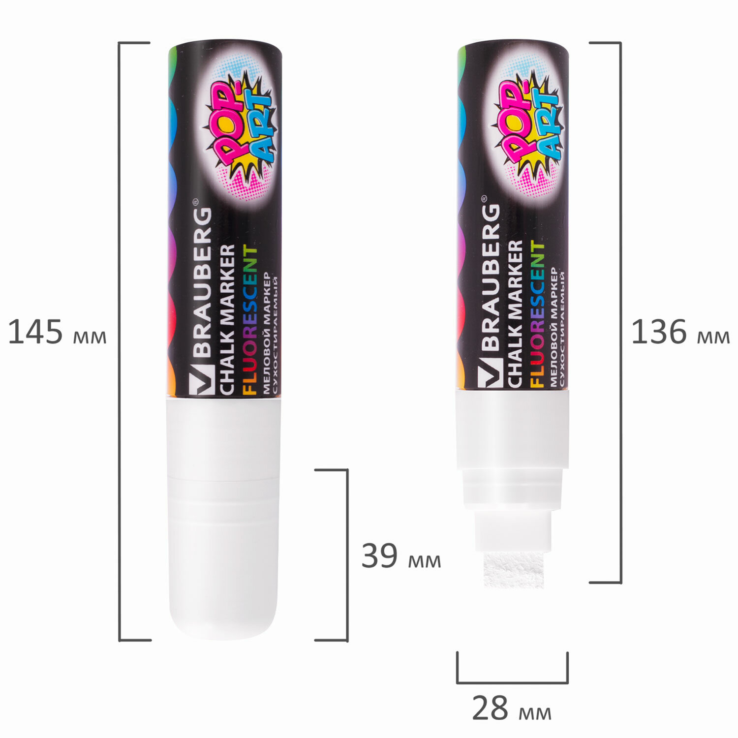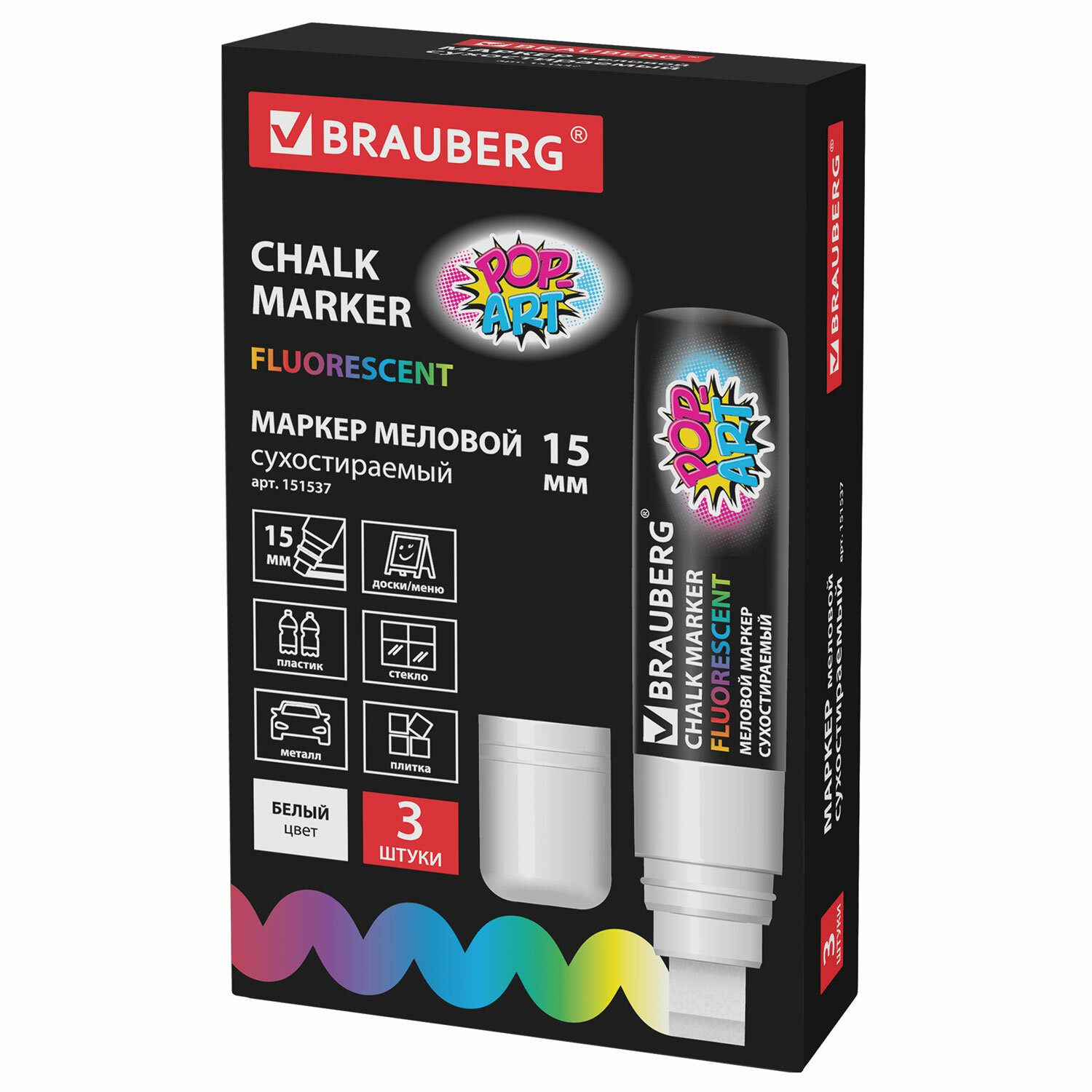 О товаре «Маркер меловой "POP-ART" БЕЛЫЙ, 15 мм, стираемый, для гладких поверхностей, BRAUBERG, 151537»