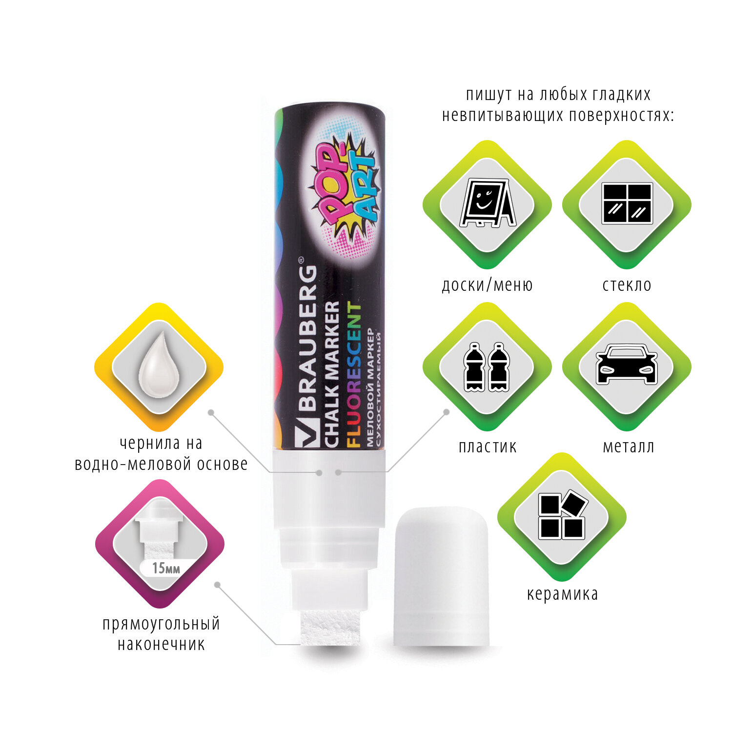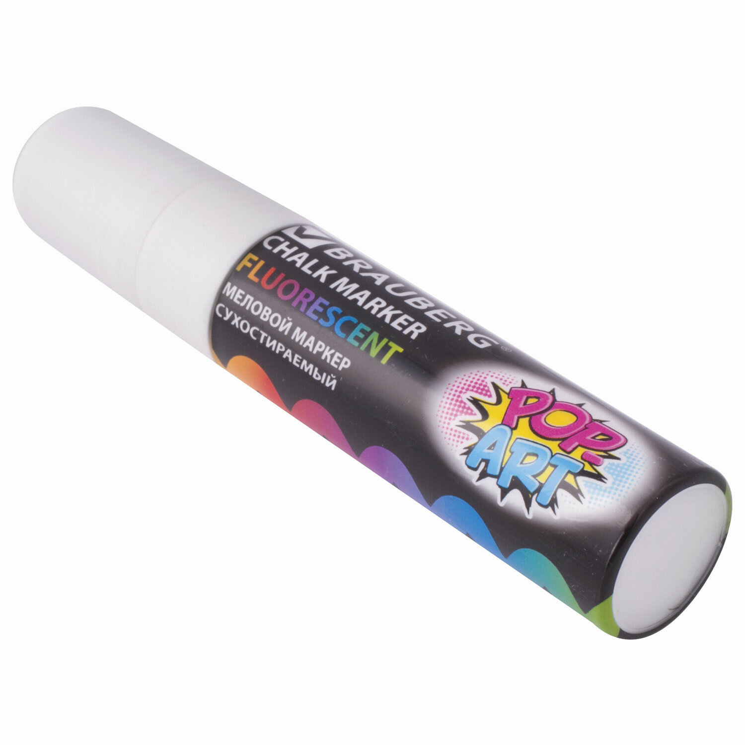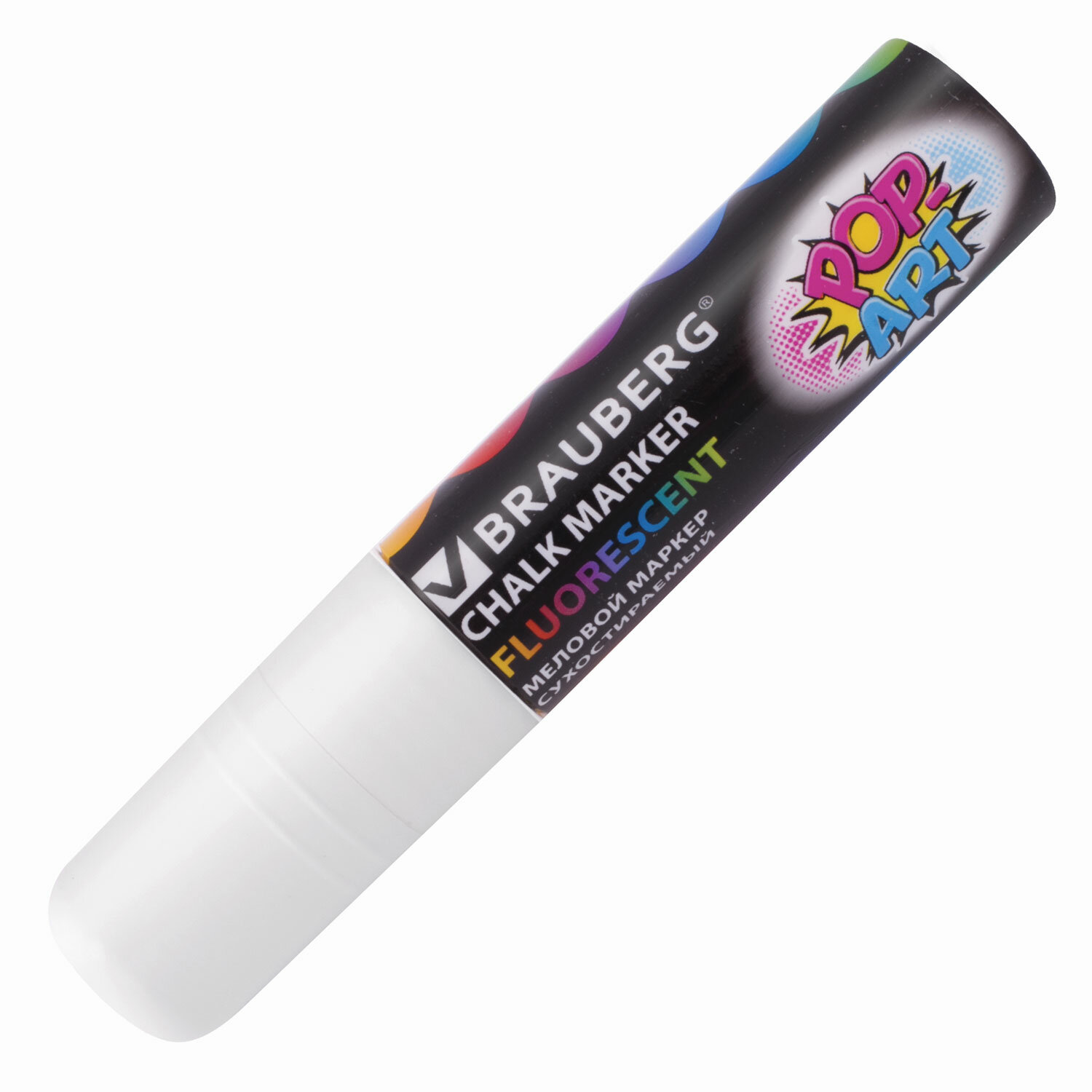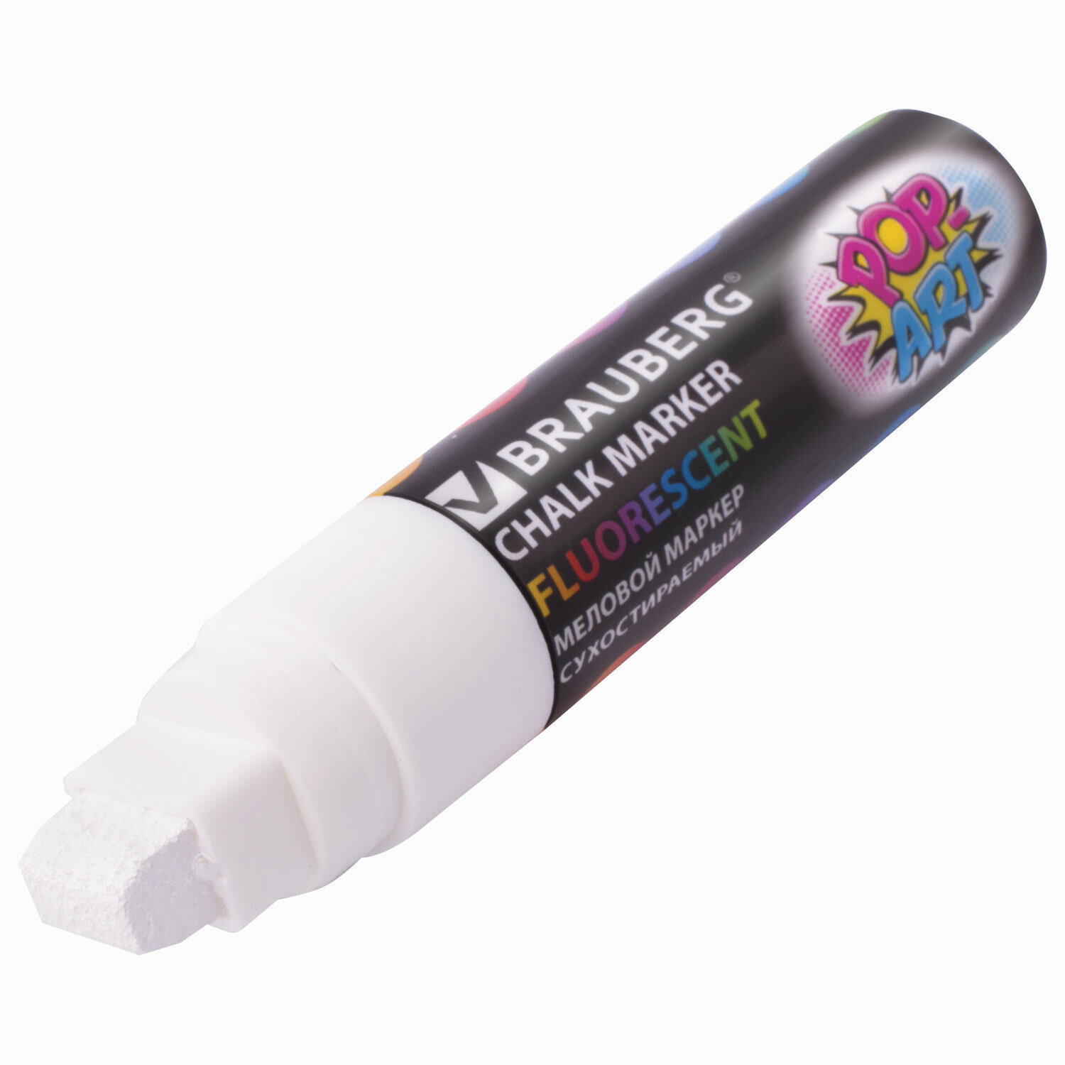 Маркер меловой "POP-ART" БЕЛЫЙ, 15 мм, стираемый, для гладких поверхностей, BRAUBERG, 151537