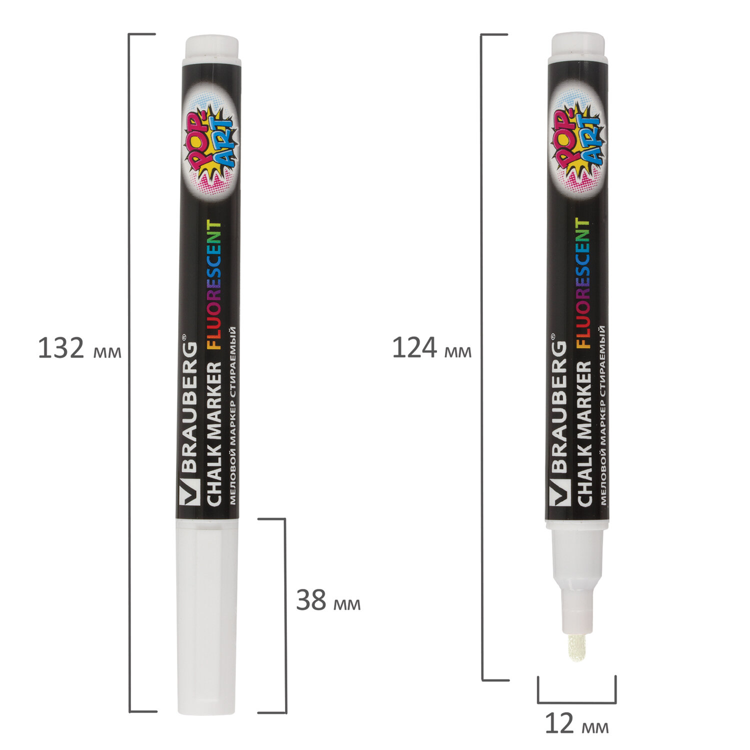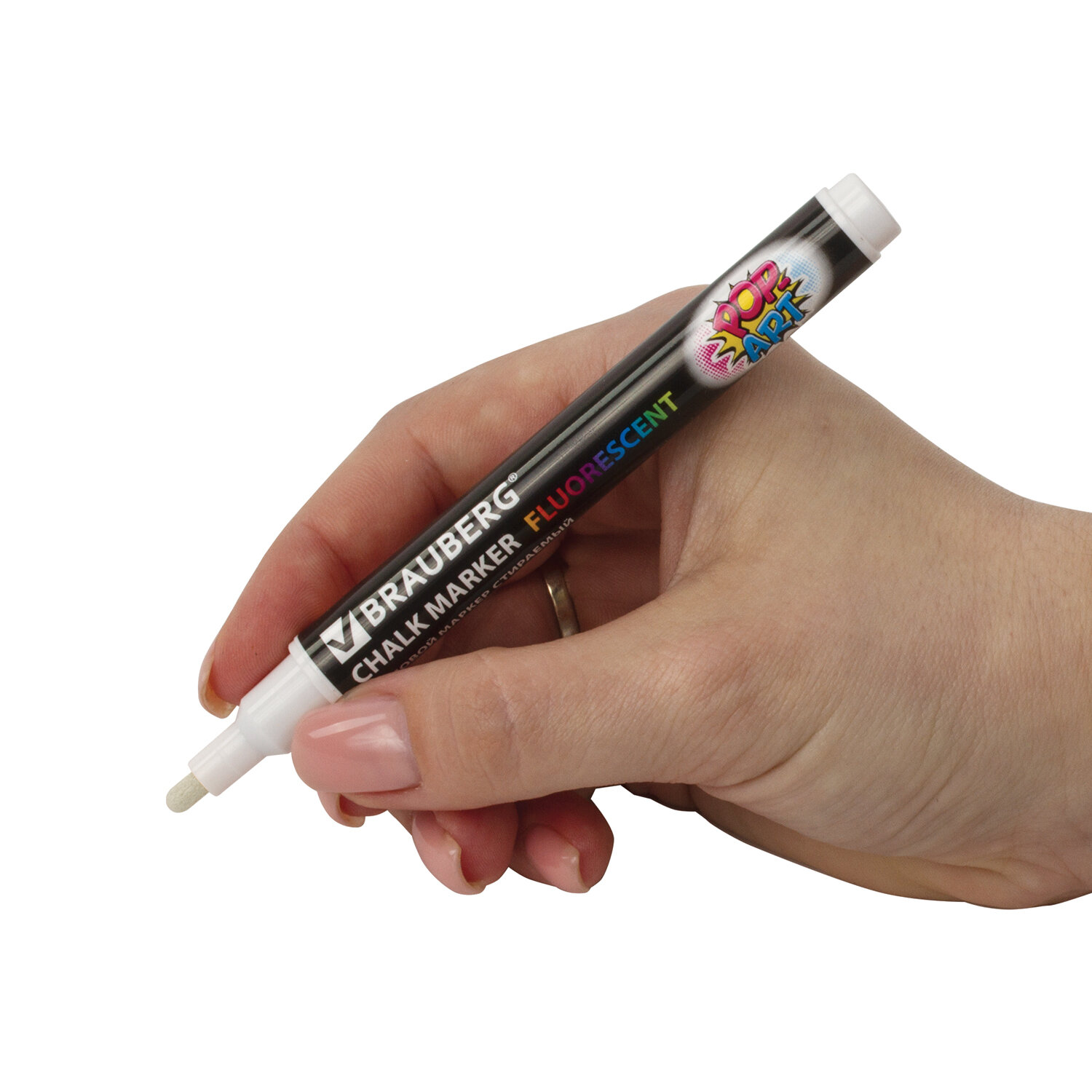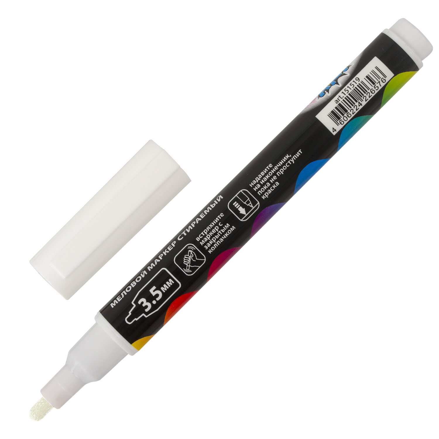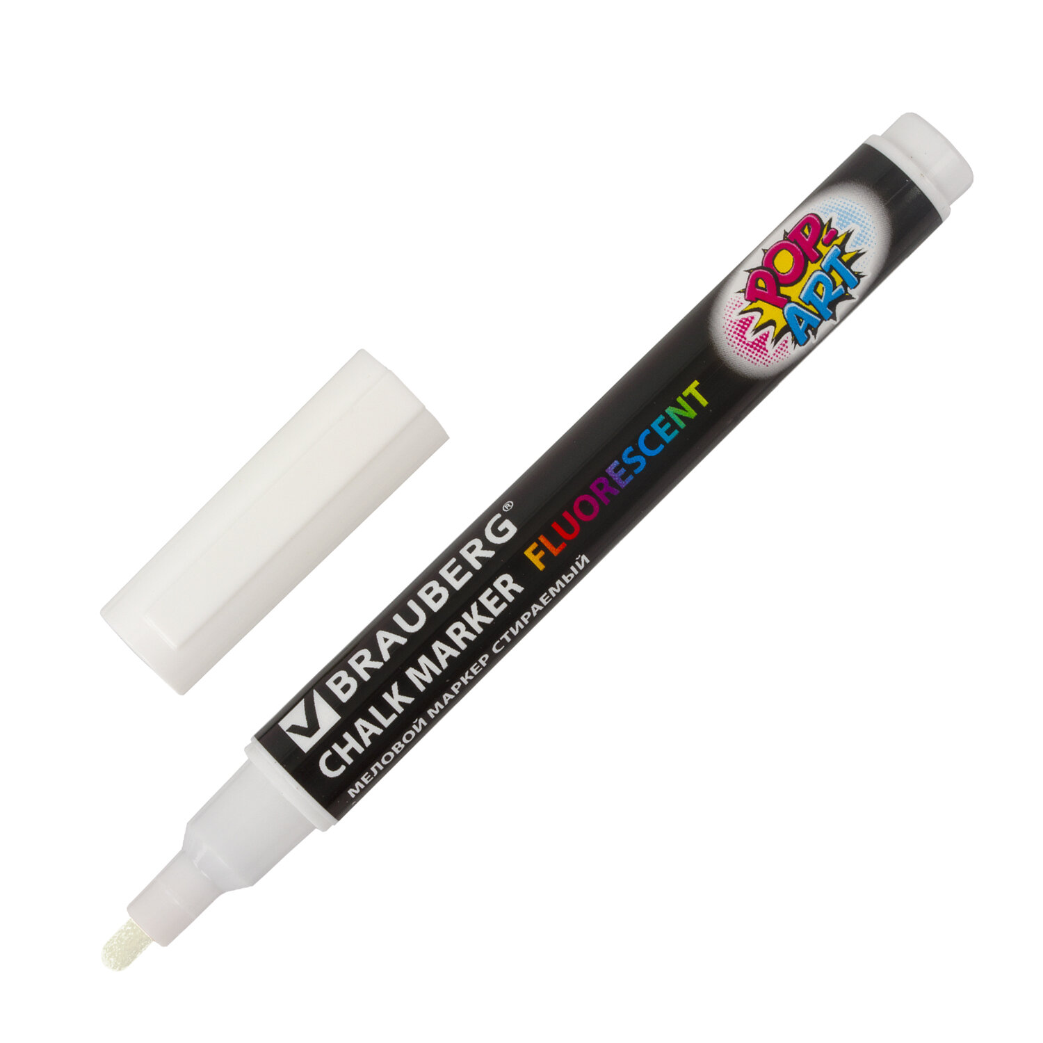 Маркер меловой "POP-ART" БЕЛЫЙ, 3,5 мм, стираемый, для гладких поверхностей, BRAUBERG, 151519