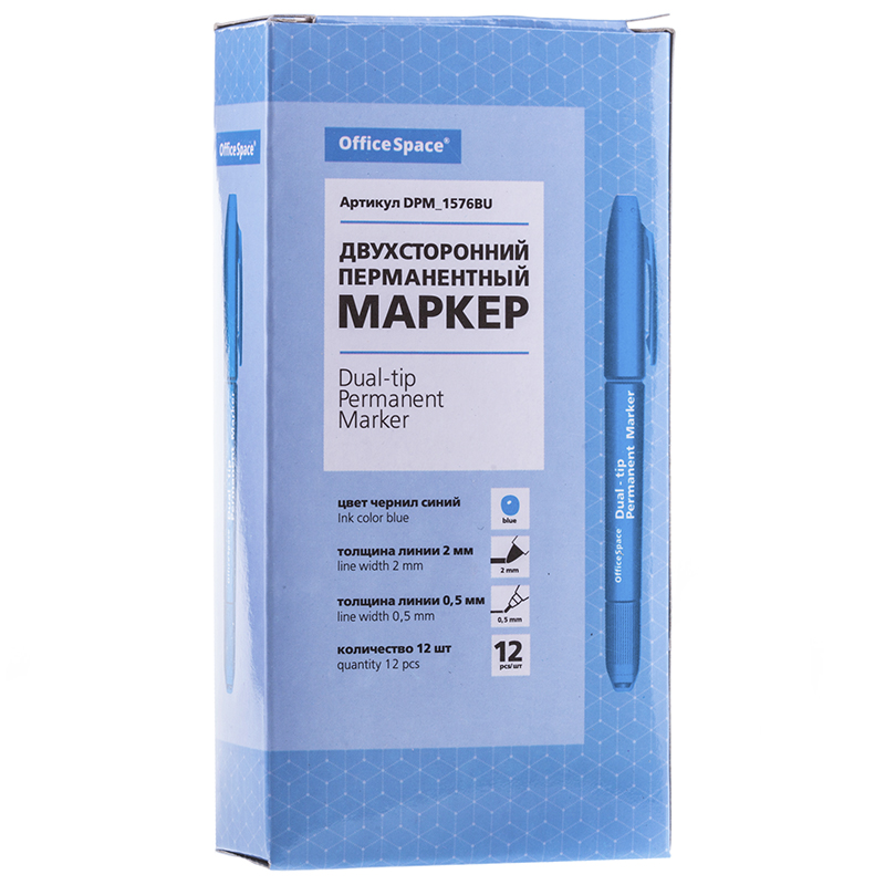 О товаре «Маркер перманентный двухсторонний OfficeSpace синий, пулевидный, 0,8/2,0мм»