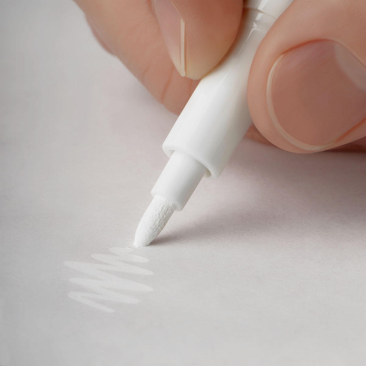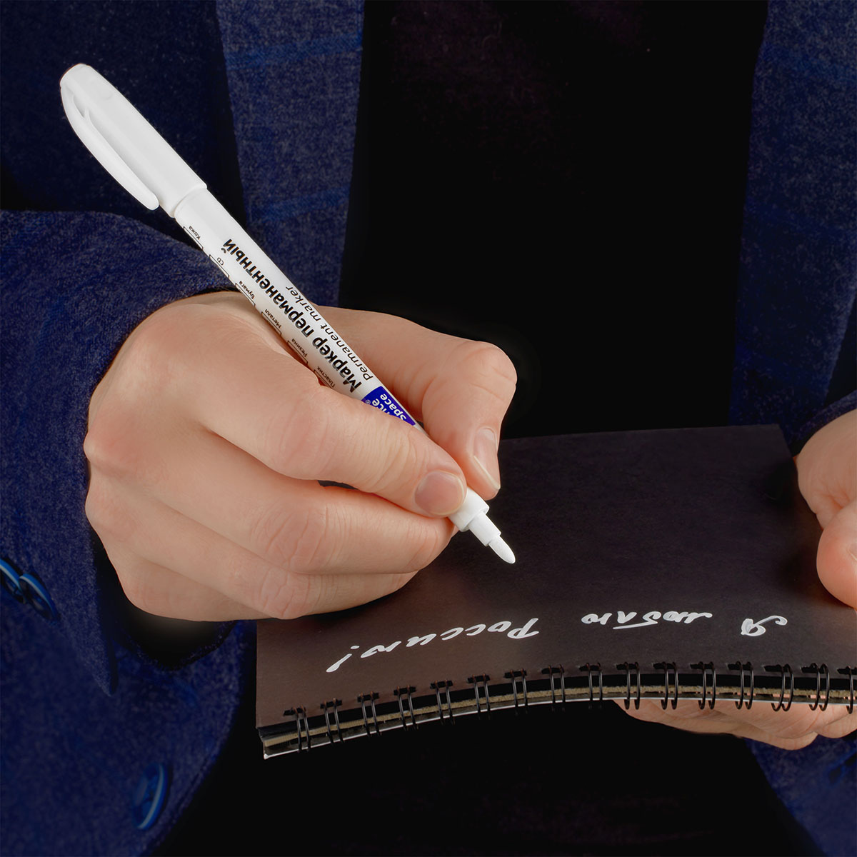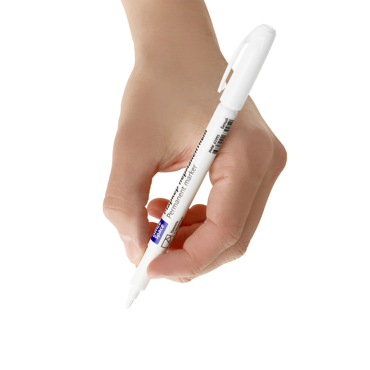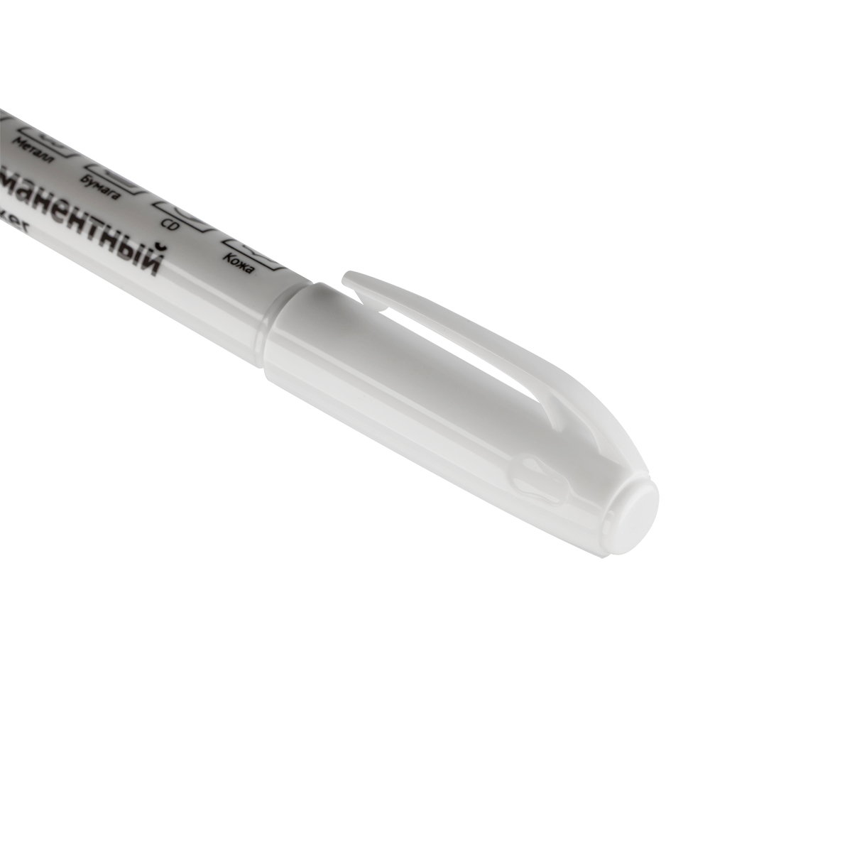 Белый перманентный маркер OfficeSpace на водной основе применяется для разметки, творчества, декорирования, маркировки. Пишет на любых поверхностях: дерево, бумага, картон, резина, металл, керамика, плитка, пластик, ткань, кожа. Маркер имеет пулевидный пишущий узел диаметром 1 мм. Нарисованные линии не стираются с поверхности после его высыхания. Кроме того, они устойчивы к воде, стиранию, атмосферным воздействиям. Хранить с плотно закрытым колпачком. Длина письма 150 м.