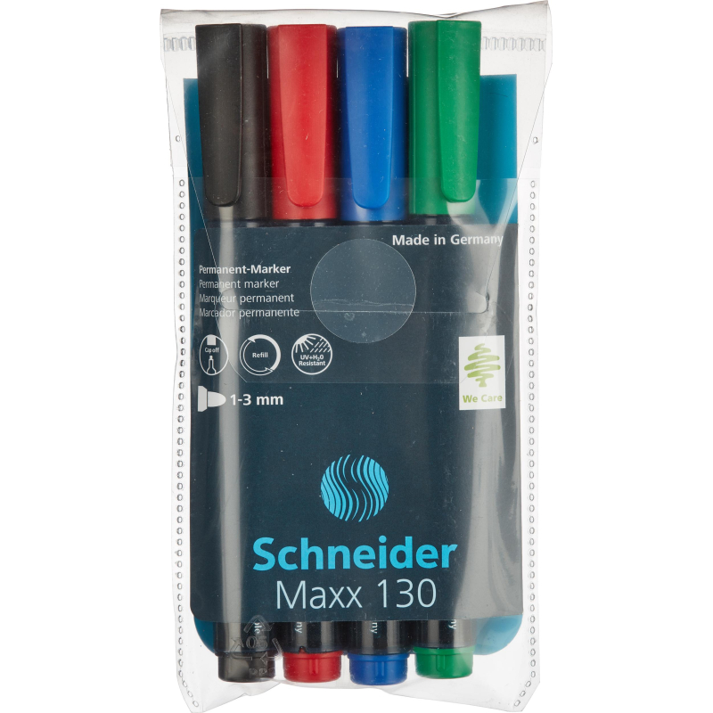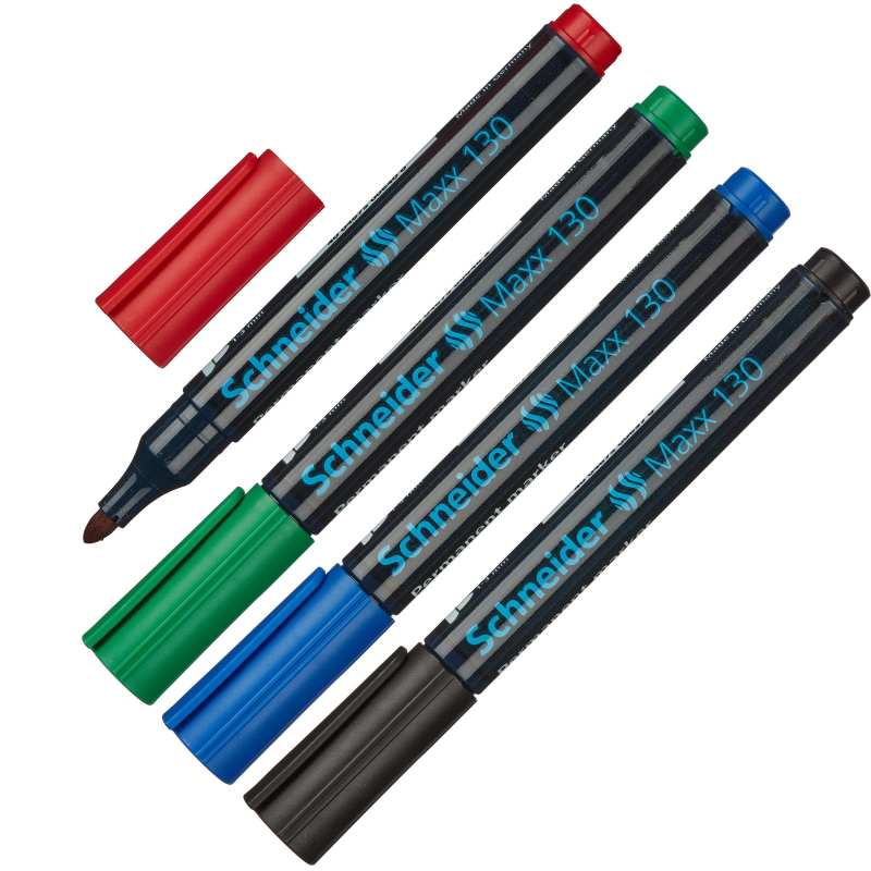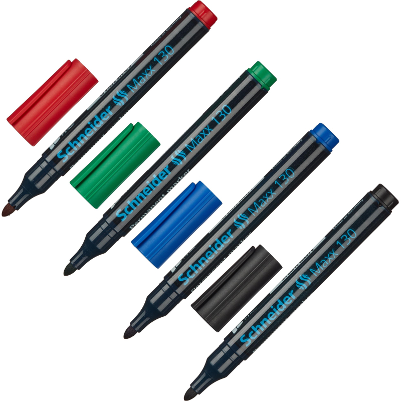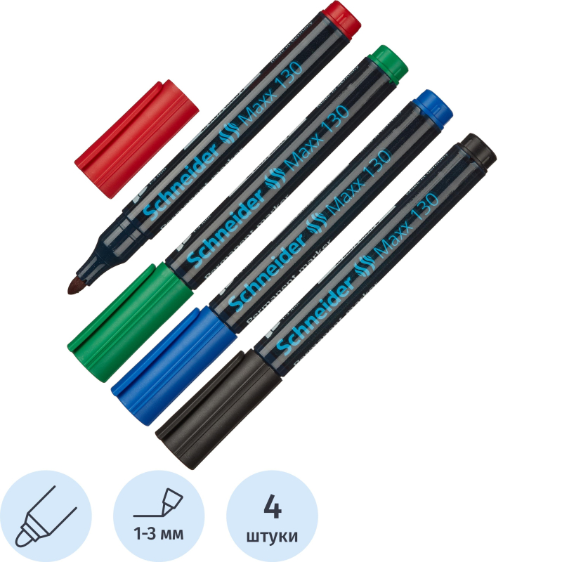 О товаре «Набор маркеров перманентныхSchneider Maxx 130 4 цвета (толщина линии 1-3 мм) круглый наконечник»
