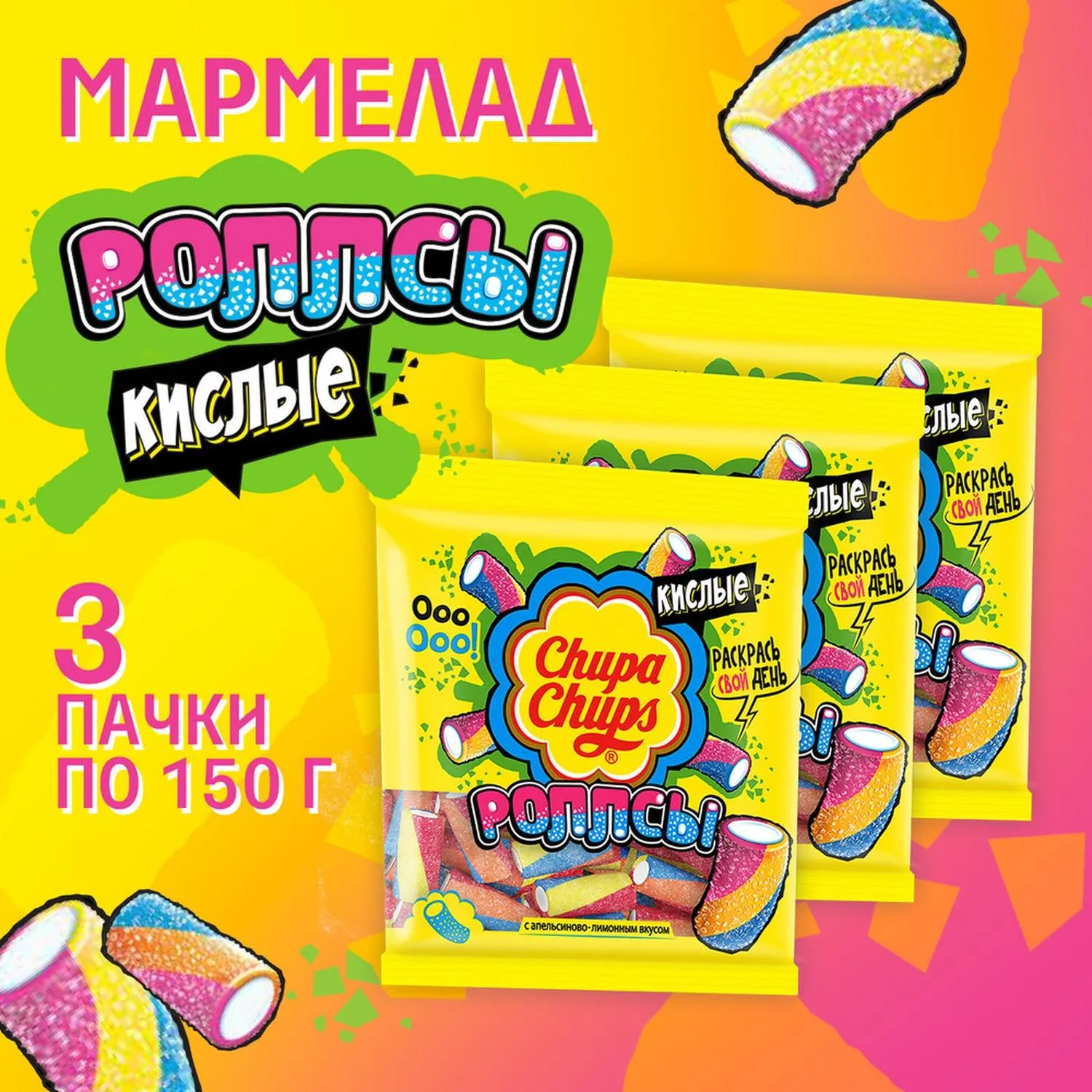 О товаре «Мармелад Chupa Chups Роллсы, 150гx3шт/уп»