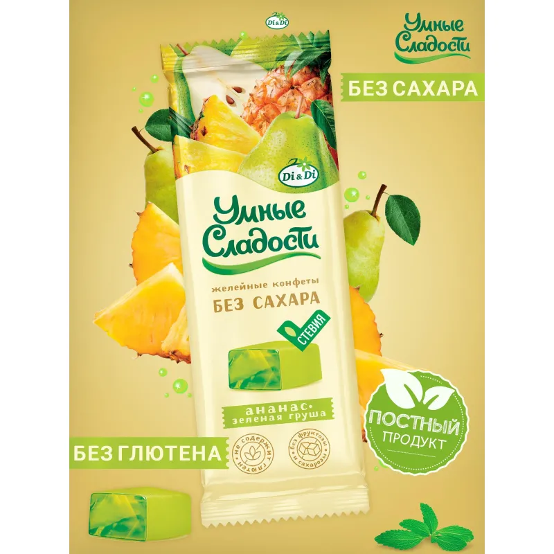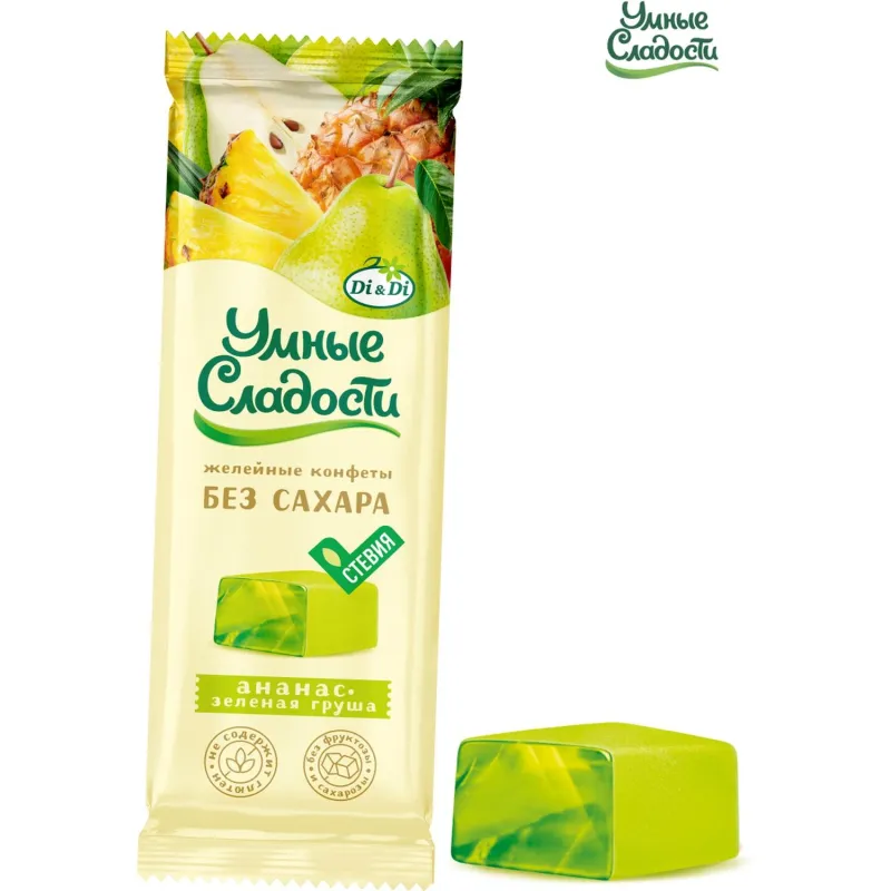 Мармелад конфеты Умные сладости Di&Di желейные ананас-зеленая груша 90 г