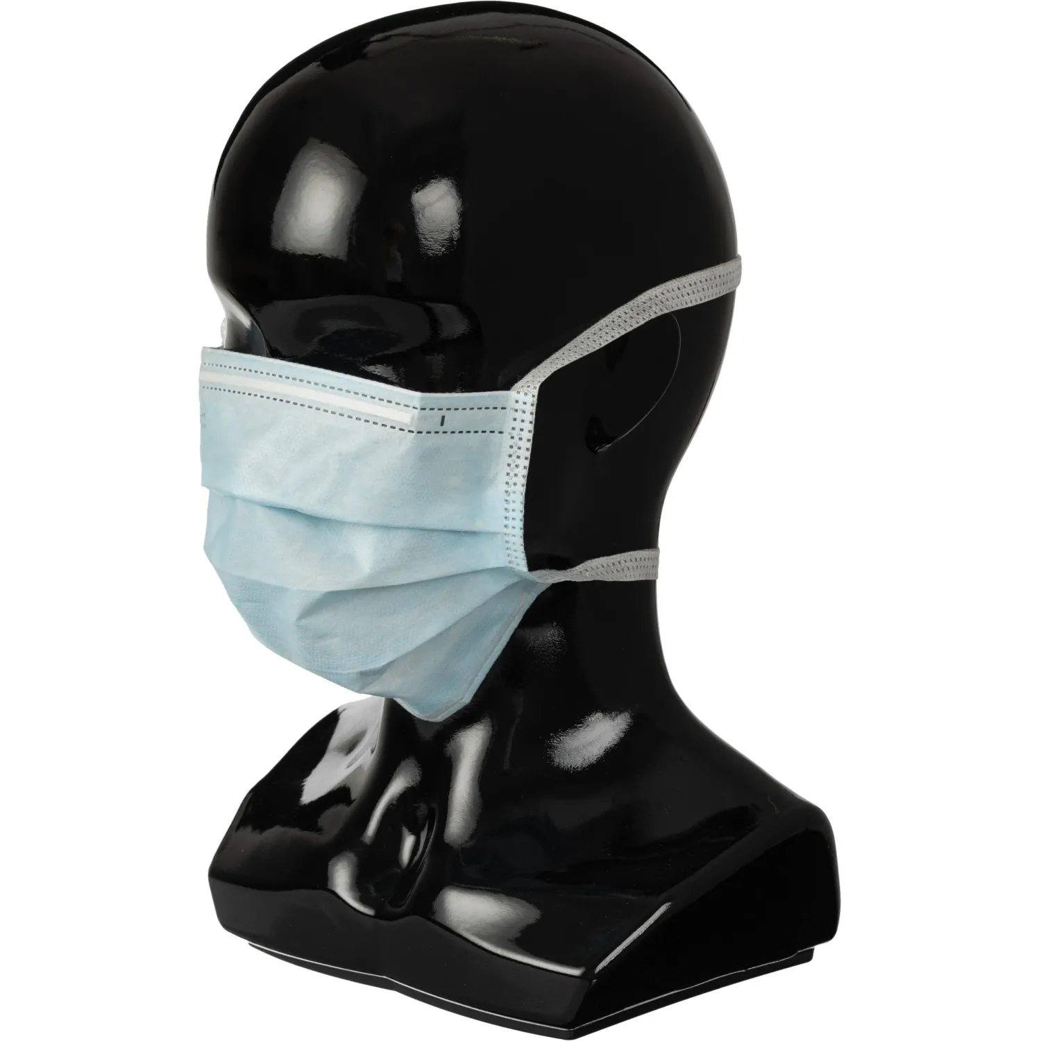 Маска медицинская трехслойная на завязках одноразовая. Имеет носовой фиксатор для более плотного и комфортного прилегания маски в области носа. Гибкий носовой фиксатор — лента PE полиэтилен. Размер: 17,5×9,5 см. Трехслойная: 2 наружных слоя изготовлены из гипоаллергенного полипропиленового нетканого материала, обладающего водоотталкивающими свойствами, воздухопроницаемостью и пониженным ворсоотделением. Фильтрующий элемент (промежуточный слой) — ’мельтблаун’. Упакована в коробки по 50 штук. Нестерильно. Срок годности 4 года.