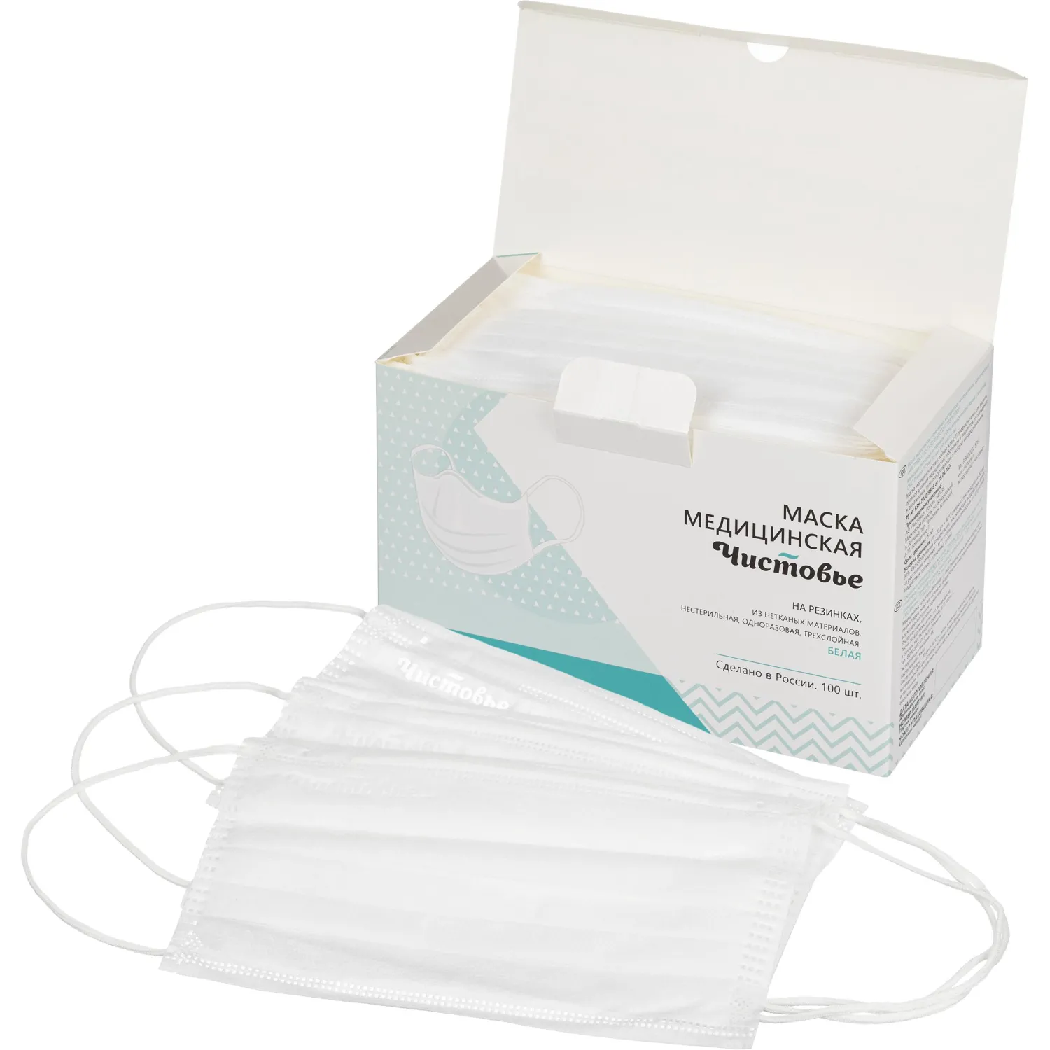 О товаре «Маска медицинская Чистовье трехслойная белая (100 штук в упаковке)»