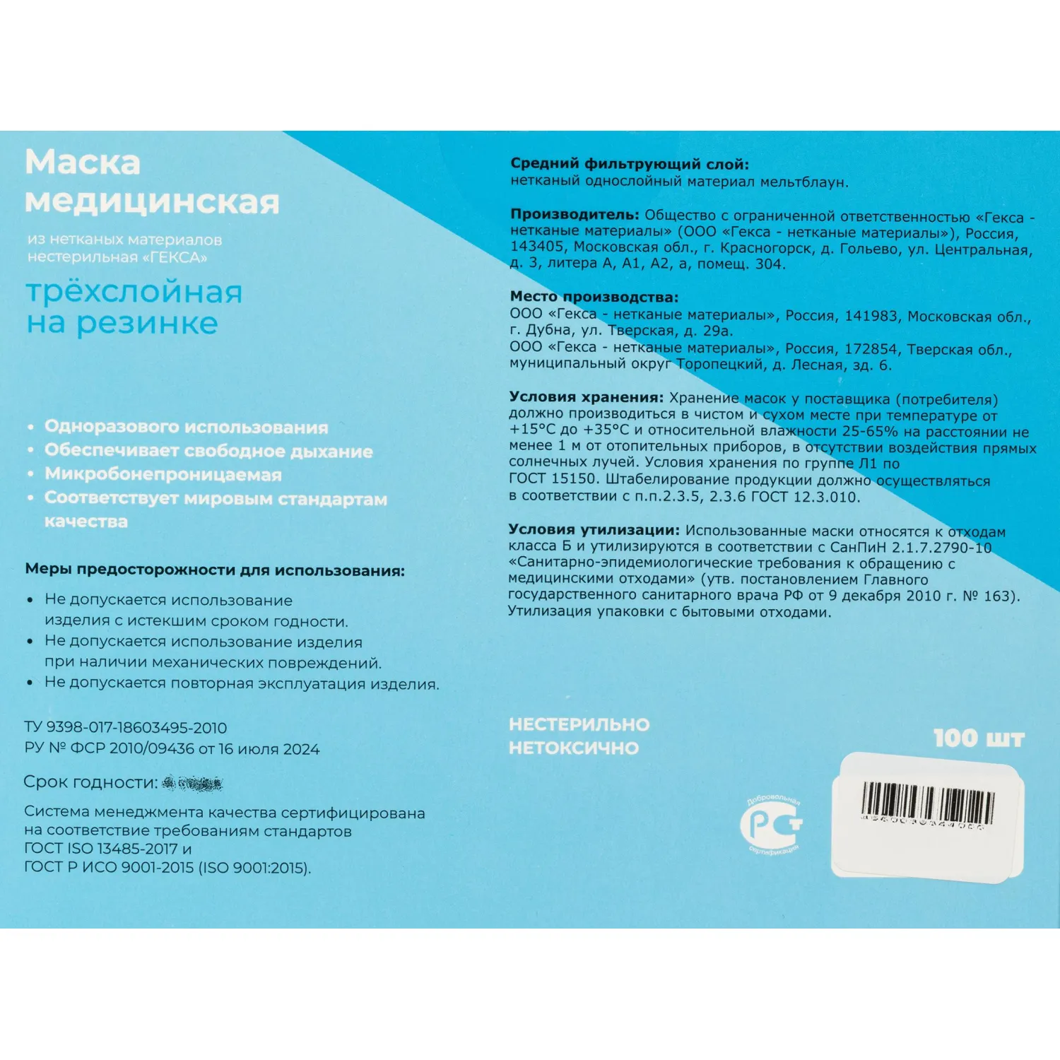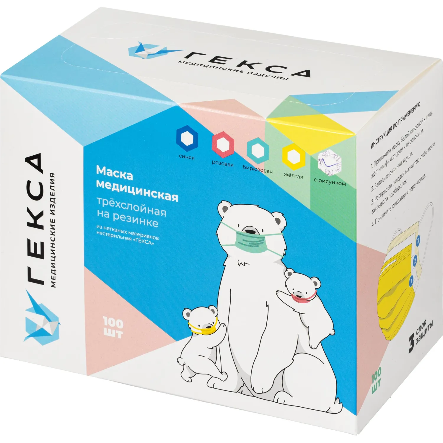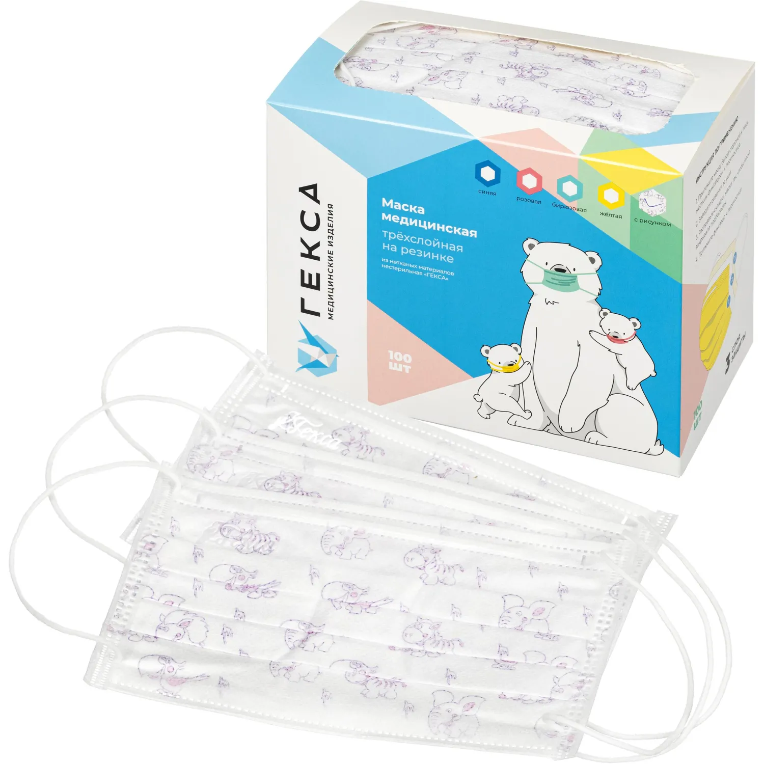 О товаре «Маска медицинская одноразовая Гекса трехслойная белая с рисунком (100 штук в упаковке)»