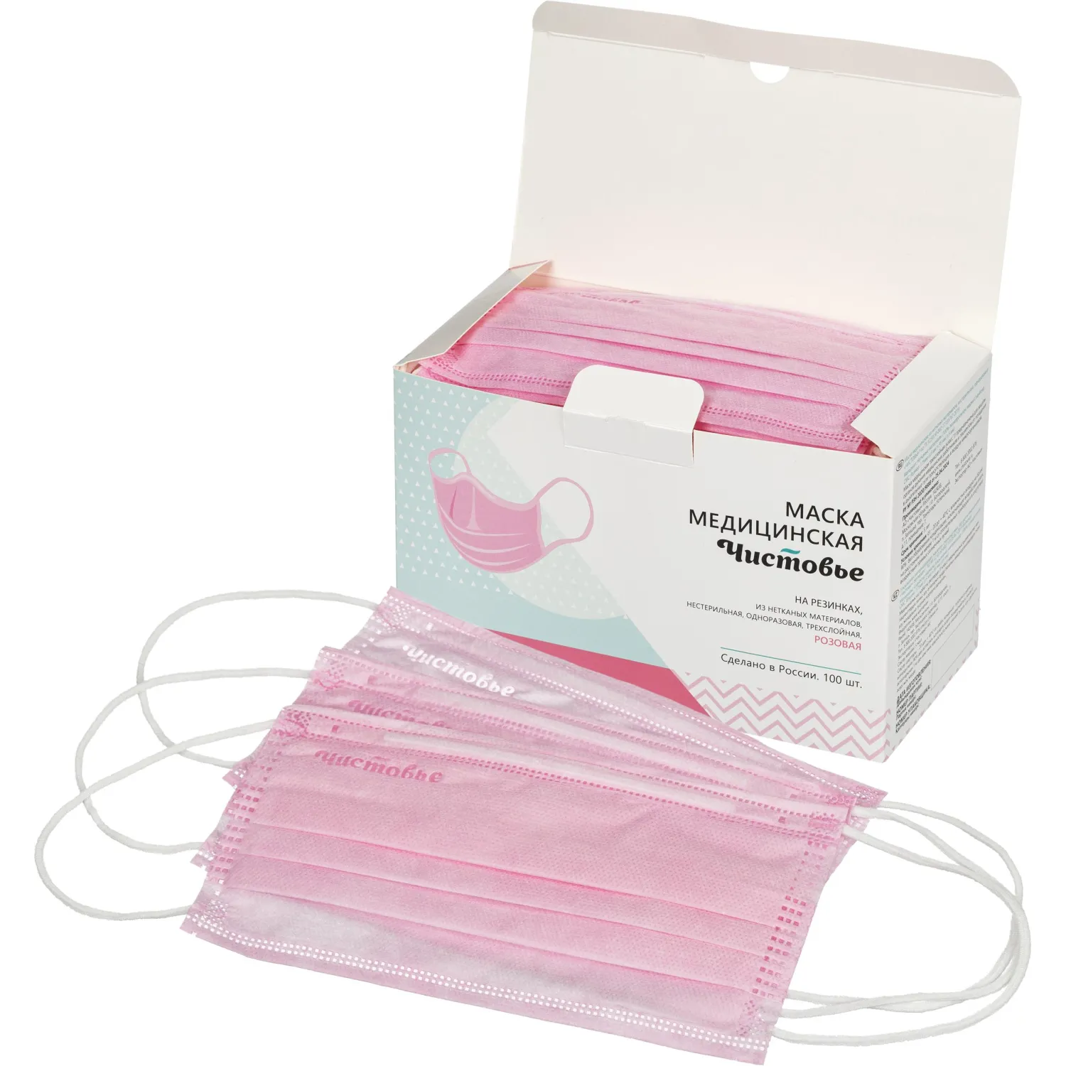 О товаре «Маска медицинская одноразовая Чистовье трехслойная розовая (100 штук в упаковке)»