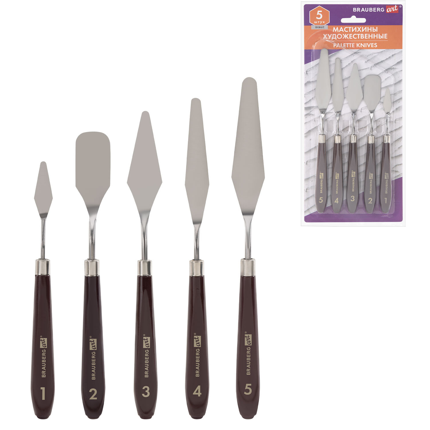 О товаре «Мастихины художественные, набор 5 штук, BRAUBERG ART DEBUT, 192683»