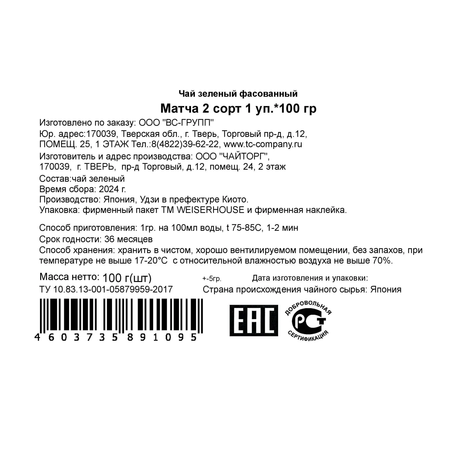 О товаре «Матча Weiserhouse 2 сорт 100 г»