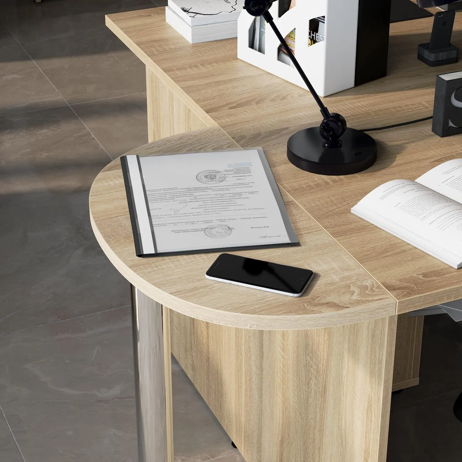 Торцевая приставка Easy One объединяющая два письменных стола изготовлена из ЛДСП толщиной 22 мм в декоре дуб сонома, кромка — дуб сонома. К приставке необходимы две опоры — поставляются отдельно. Функционально приставка увеличивает рабочую поверхность письменного стола. Необходимо укомплектовать опорами (арт. 288903).