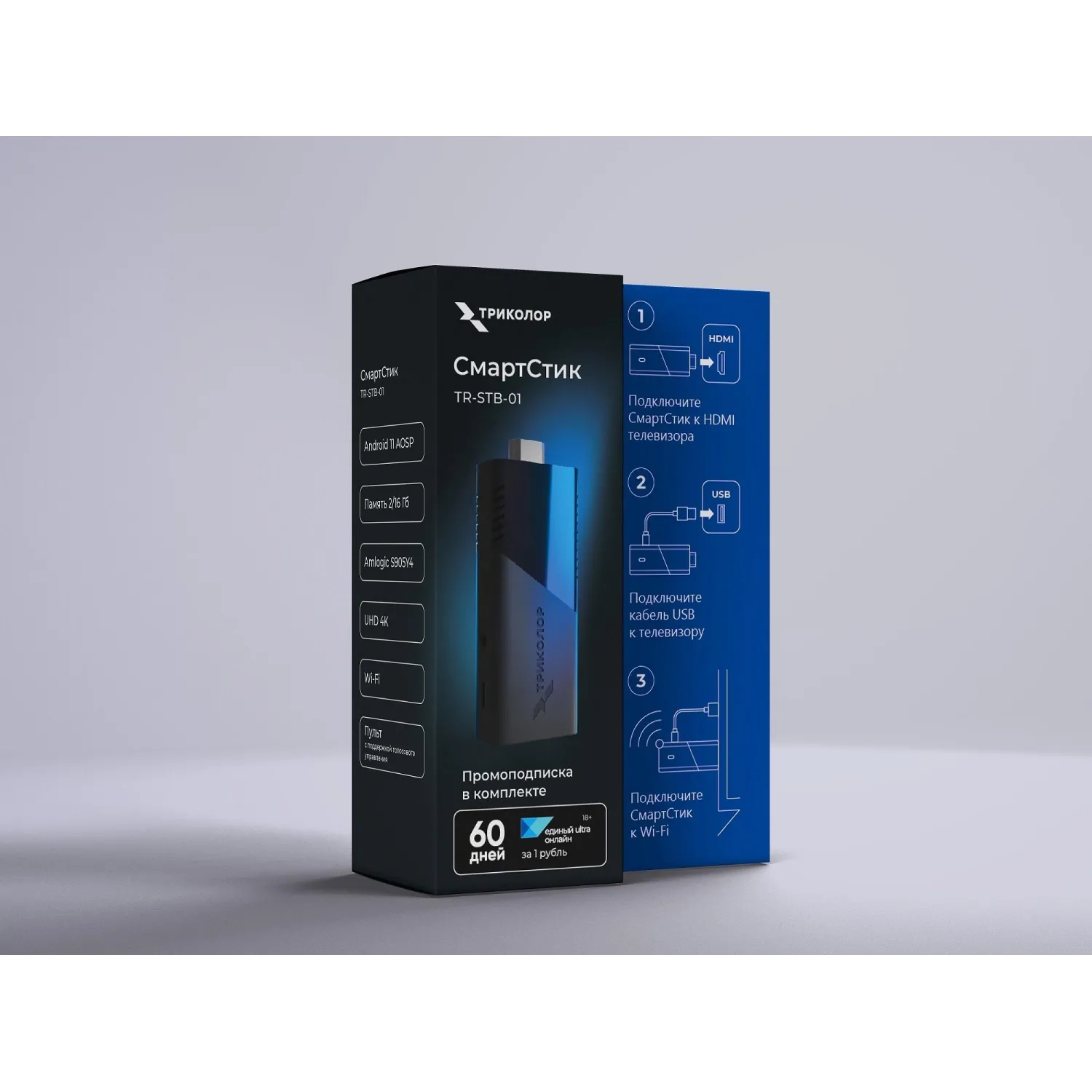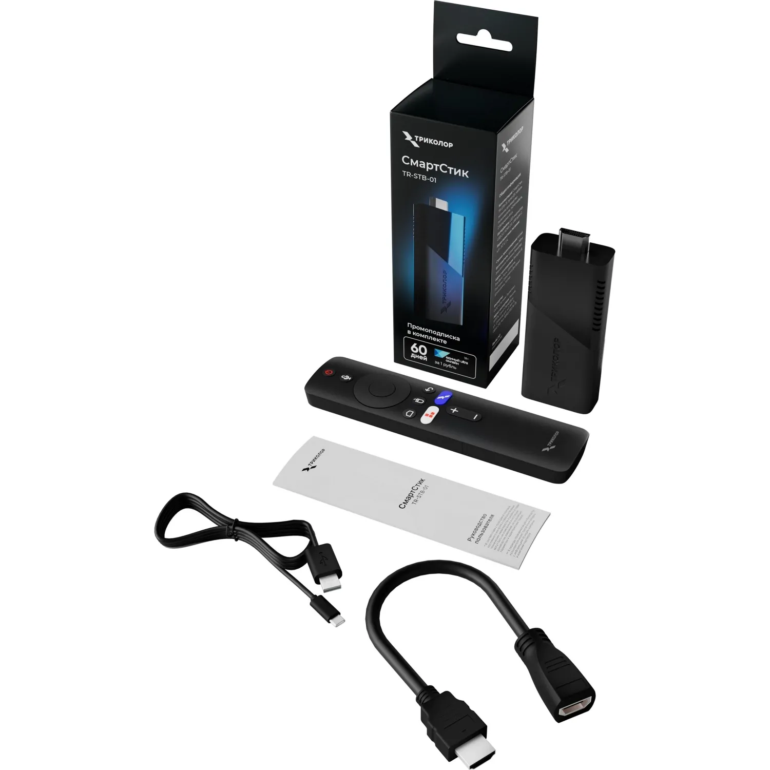 Первая андройд-приставка выпущенная под брендом Триколор в формате Стика. Приставка даёт доступ к просмотру медиа-контента через Интернет, способна превратить обычный телевизор в SMART TV (при наличии у телевизора HDMI-входа).