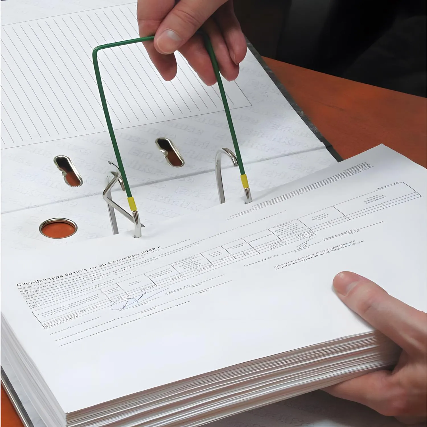 Металлопластиковый разъемный сшиватель для бумаг оснащен фиксатором, позволяющим быстро перенести бумаги из папок в архивные ящики. Механизм для скоросшивателя покрыт пластиковым напылением, легко гнется за счет металлического основания.