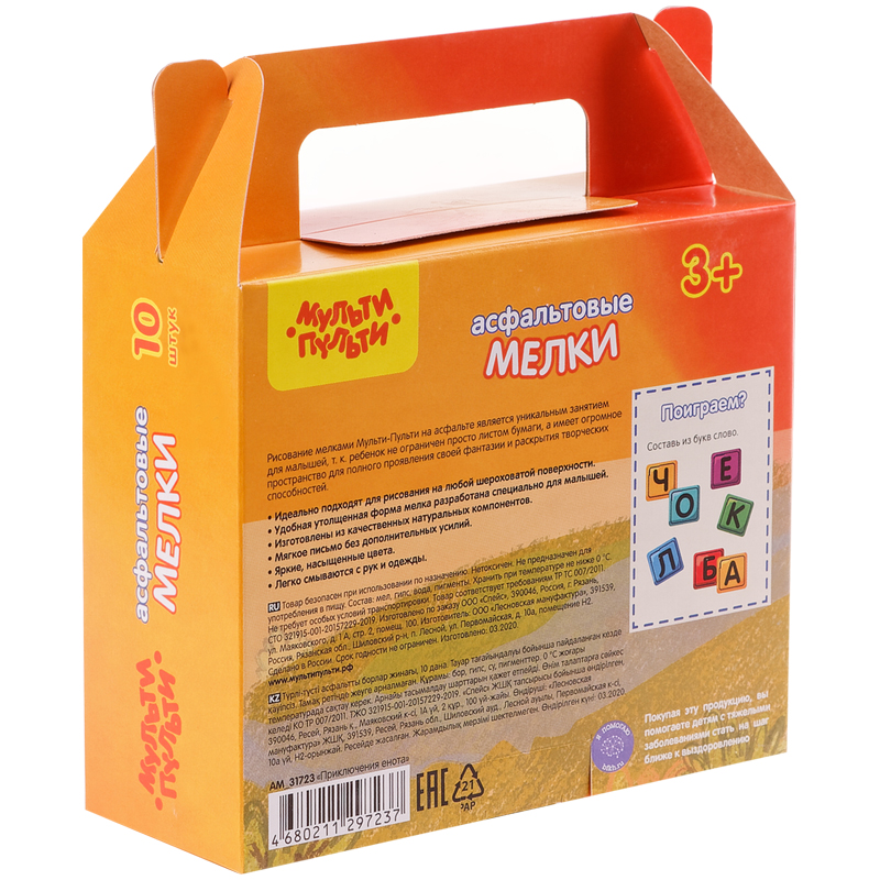 О товаре «Мелки цветные для асфальта Мульти-Пульти, 10шт., 5цв., круглые картонная коробка»