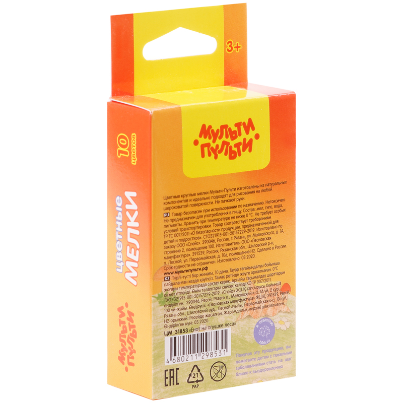 О товаре «Мелки цветные Мульти-Пульти "Енот на опушке леса", 10цв., круглые, картонная коробка, европодвес»