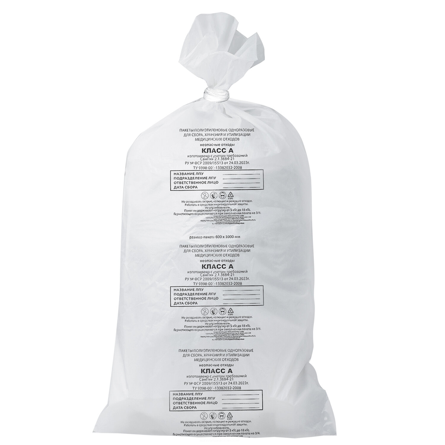 О товаре «Мешки для мусора медицинские КОМПЛЕКТ 20 шт., класс А (белые), 100 л, 60х100 см, 14 мкм»