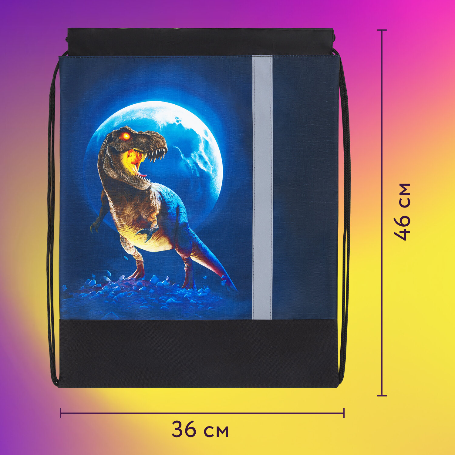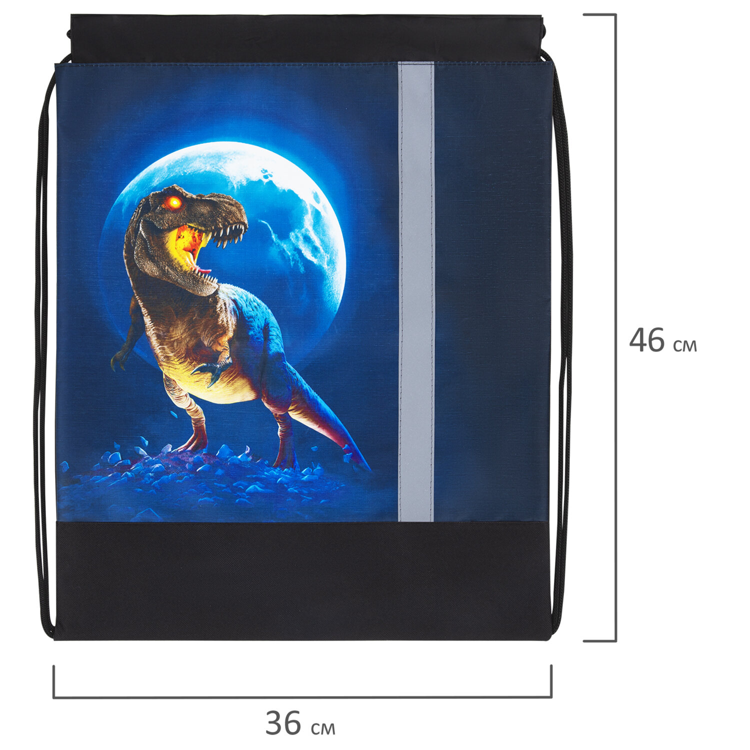Мешок для обуви BRAUBERG, с петлей, светоотражающая полоса, 2 отделения, 46х36 см, Night warrior, 272396