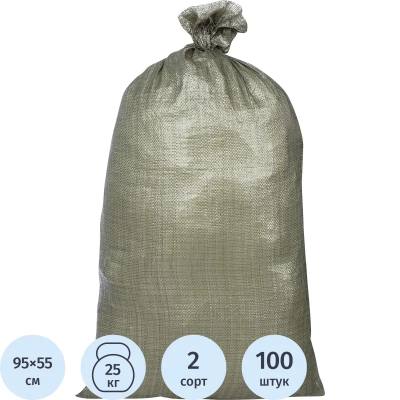 Мешок полипропиленовый второй сорт зеленый 55x95 см (100 штук в упаковке)
