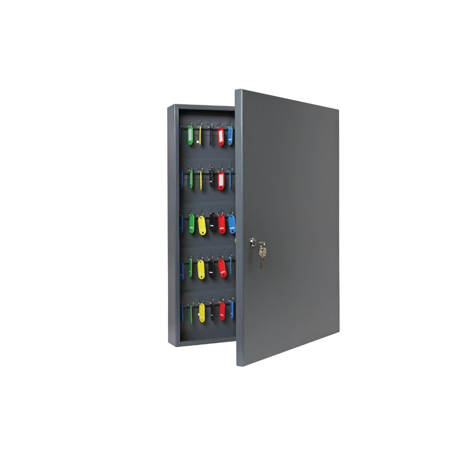 Металлические настенные ключницы — это небольшие настенные шкафы, которые предназначенные для хранения ключей. В зависимости от модели ключницы рассчитаны на 40, 60, 130 или 150 ключей с идущими в комплекте цветными брелками для маркировки. Данный вид металлических шкафов имеет крепление на стену, что позволяет значительно сэкономить офисное пространство и обеспечить доступ к содержимому шкафа. Настенная ключница Klesto K-130 рассчитана на 130 ключей. Изготовлена из металла толщиной 0.8 мм, окрашенного серой порошковой эмалью. В комплект поставки входит 130 разноцветных брелоков. Фурнитура для крепления к стене в комплект не входит.