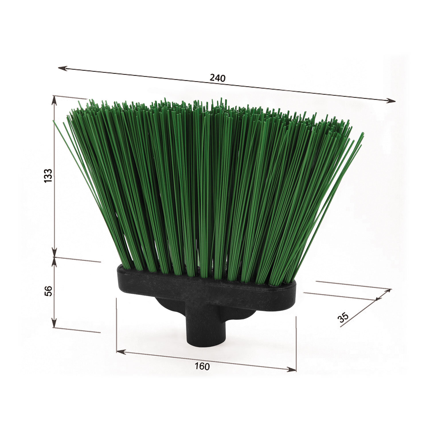Ширина щетки – 24 см, длина щетины – 13,3 см. Совместима с черенками с еврорезьбой.