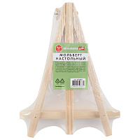 Изготовлен из натурального бука, пропитанного маслом. Мольберт настольный прост в установке. Максимальная высота размещаемого холста – 30 см. Мачта неподвижная с фиксированным углом наклона.