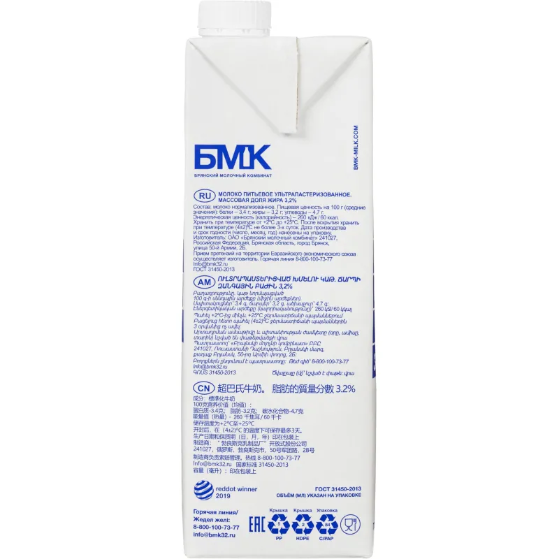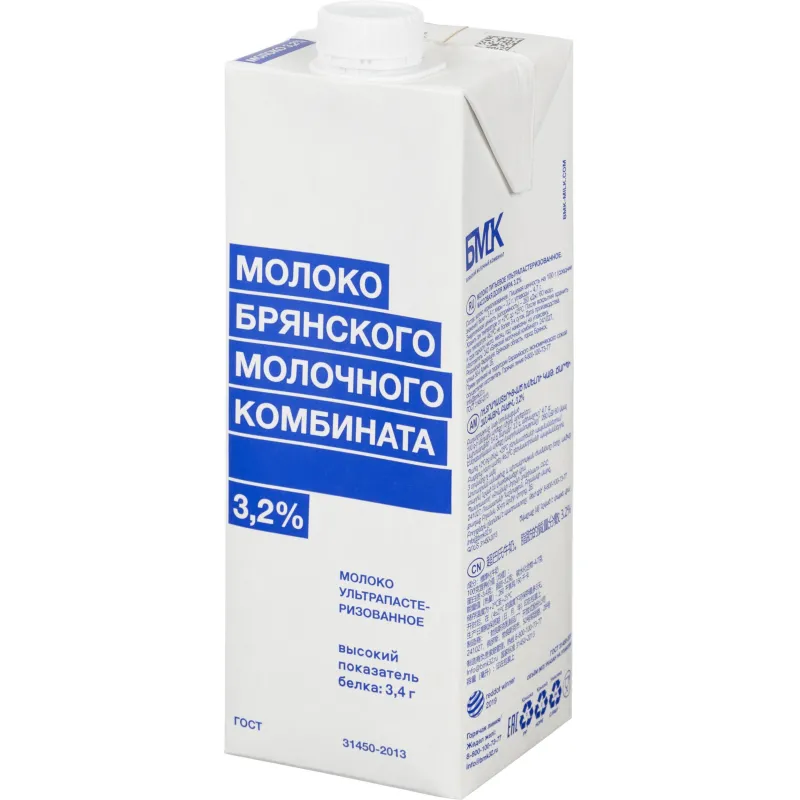 О товаре «Молоко БМК ультрапастеризованное 3.2% 975 мл»