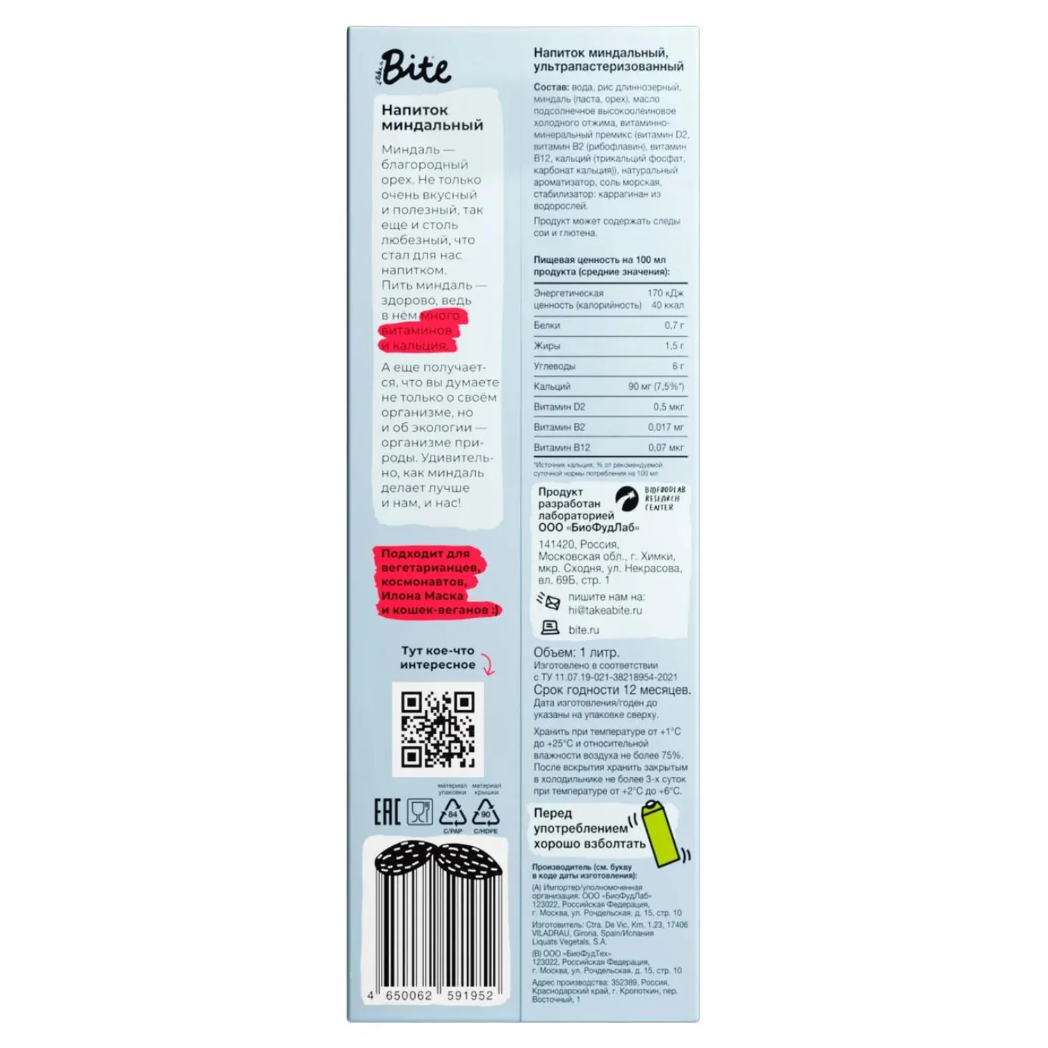 О товаре «Молоко растительное Bite миндальное, 1л»