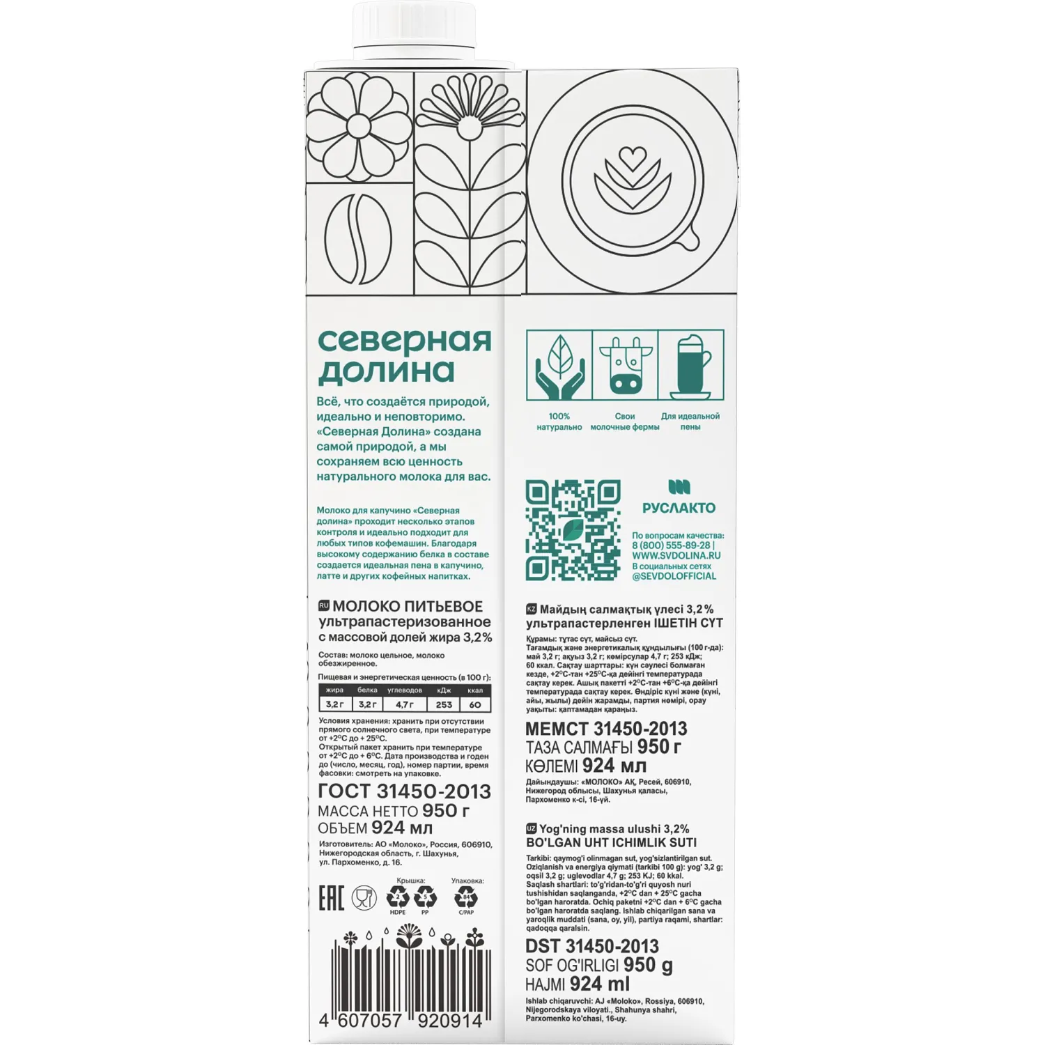 О товаре «Молоко Северная Долина (Prof) ультрапастериз для капучино 3,2% 950г»