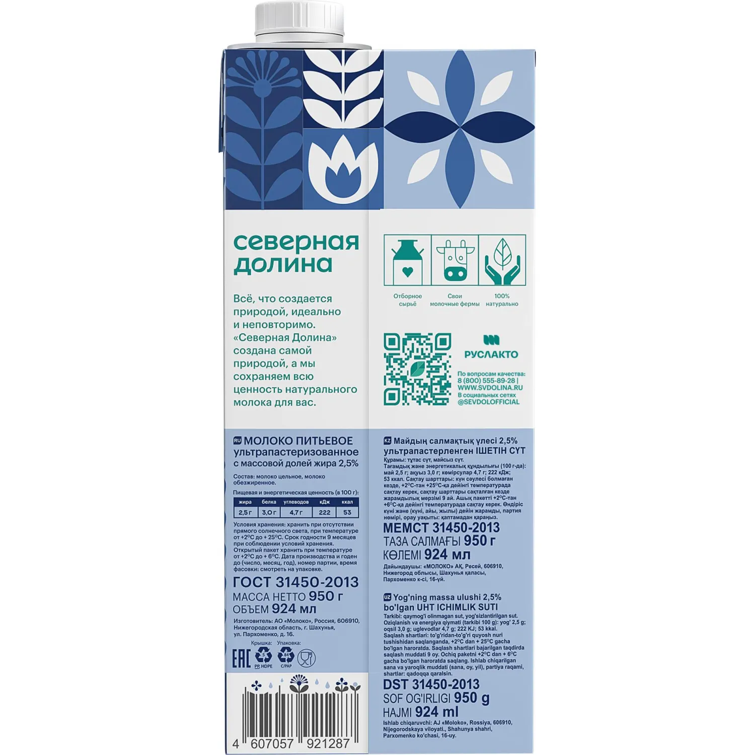 Молоко Северная Долина ультрапастериз 2,5% 950г