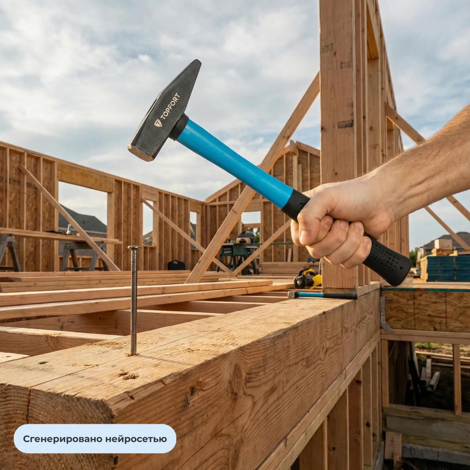 О товаре «Молоток слесарный TOPFORT с фибергласовой рукояткой 500 г»