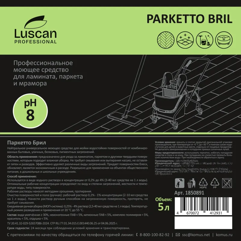 О товаре «Моющее средство для ламината Luscan Professional Parketto Bril 5 л (концентрат)»