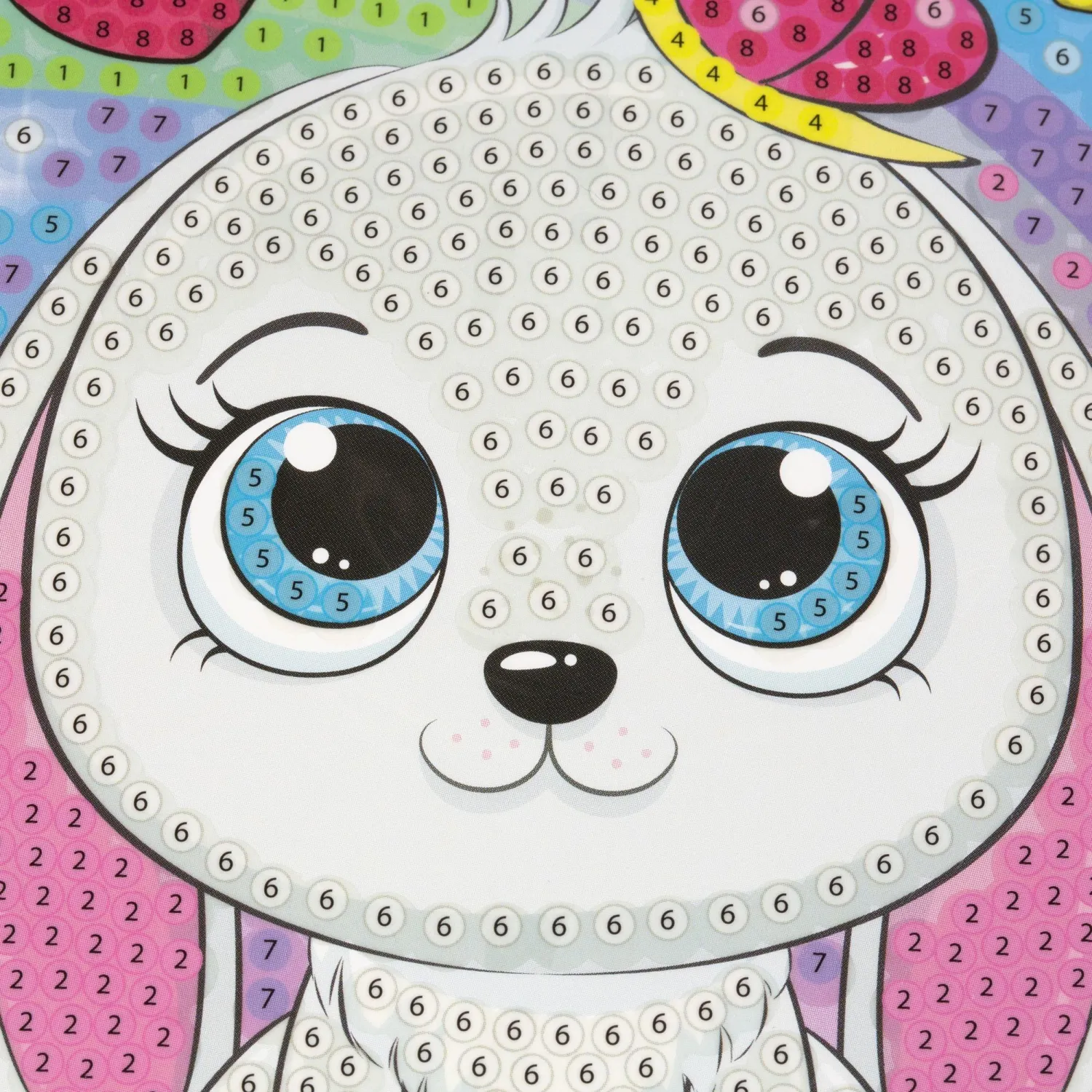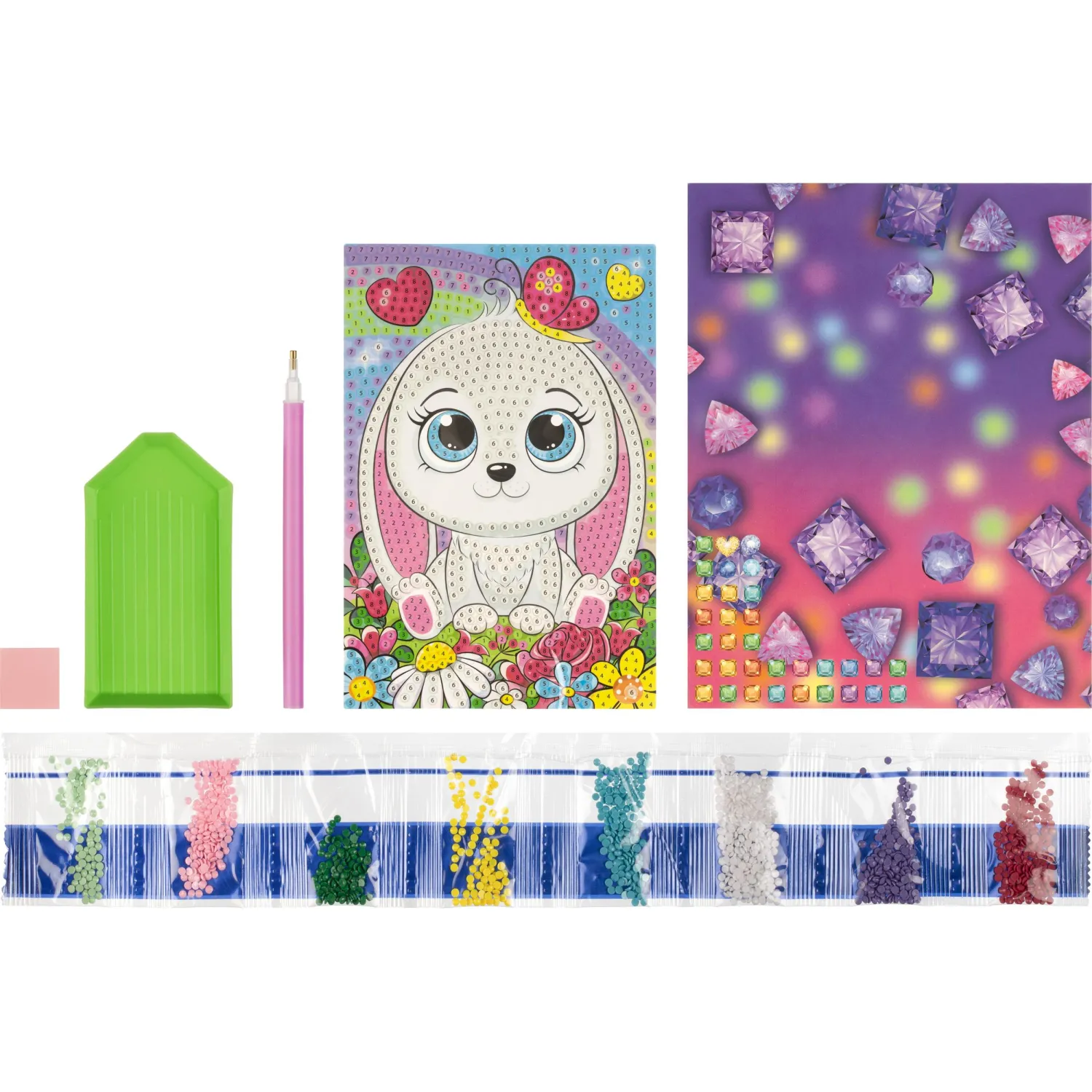 Увлекательный набор для детского творчества, который помогает развивать внимание, мелкую моторику и чувство цвета. В процессе работы ребёнок выкладывает изображение яркими стразами, создавая переливающуюся картину с изображением зайчика.