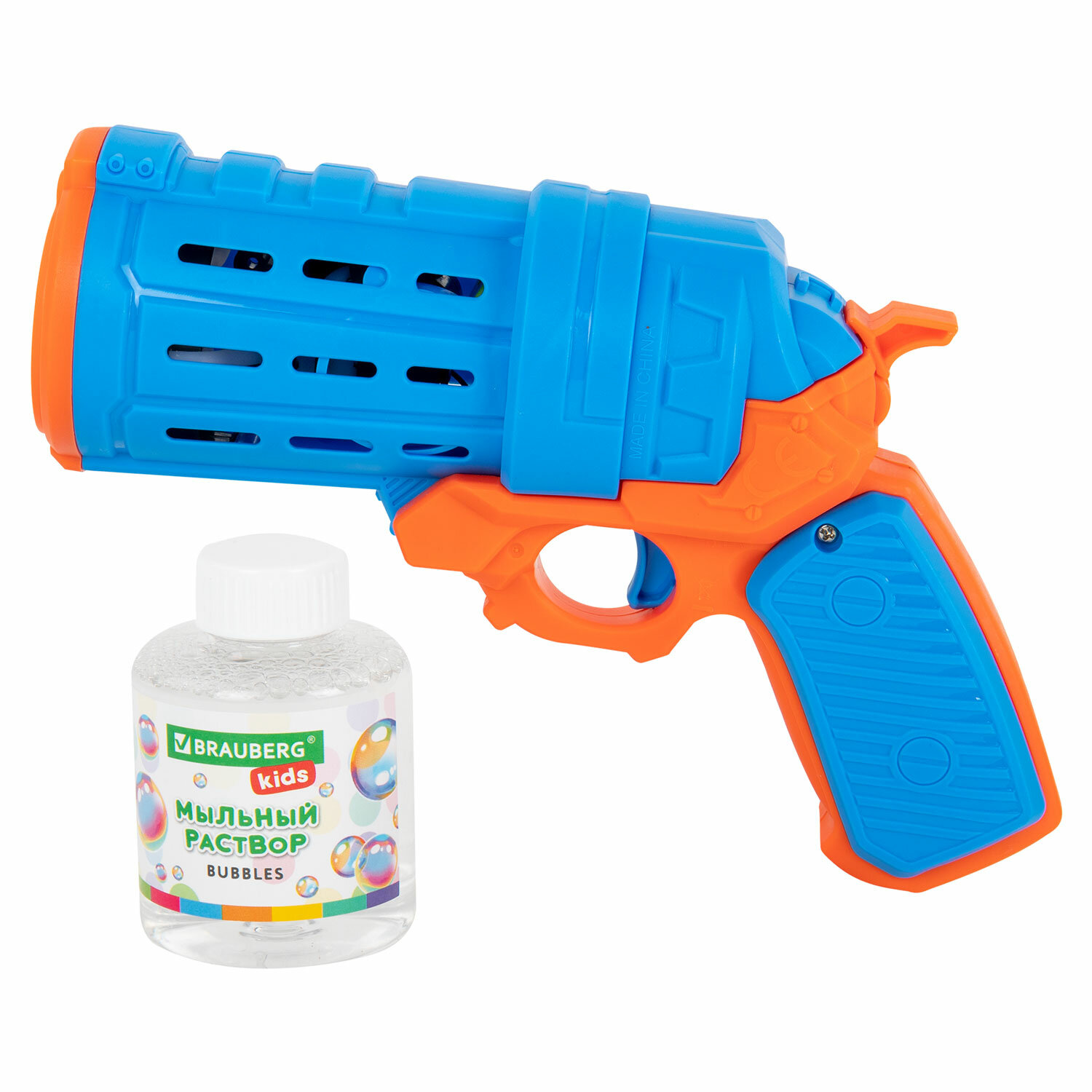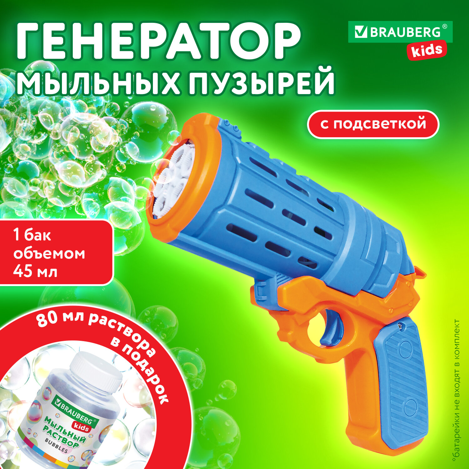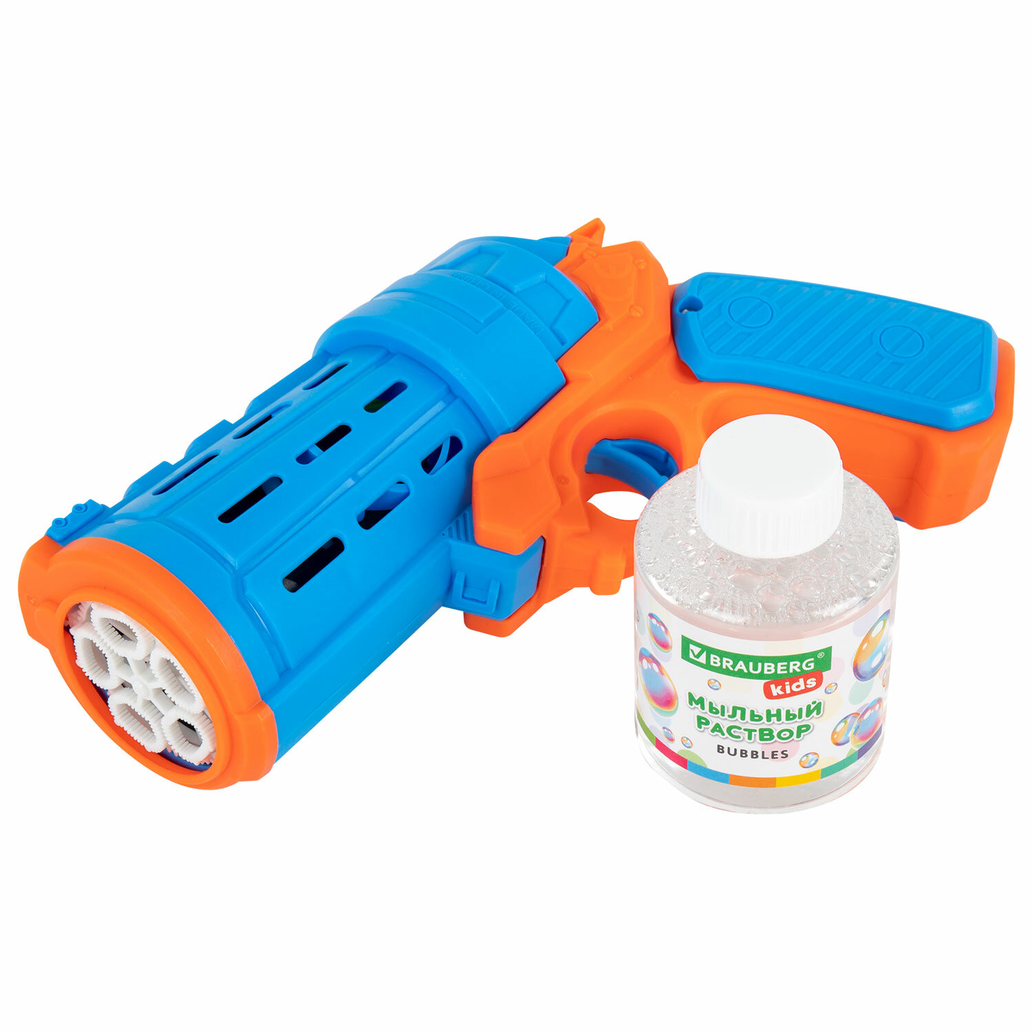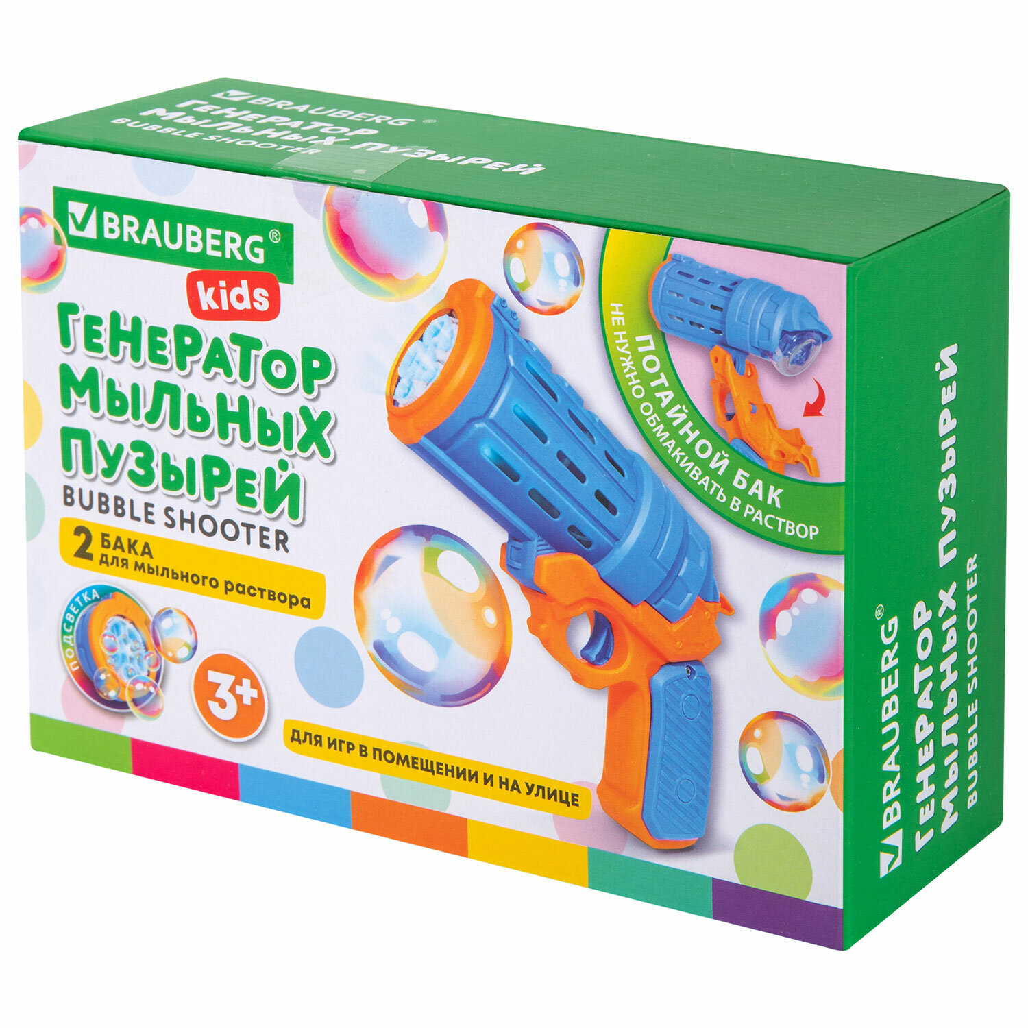 О товаре «Мыльные пузыри Бластер Генератор "КОЛЬТ" с потайным баком, раствор 80 мл, BRAUBERG KIDS, 665149»