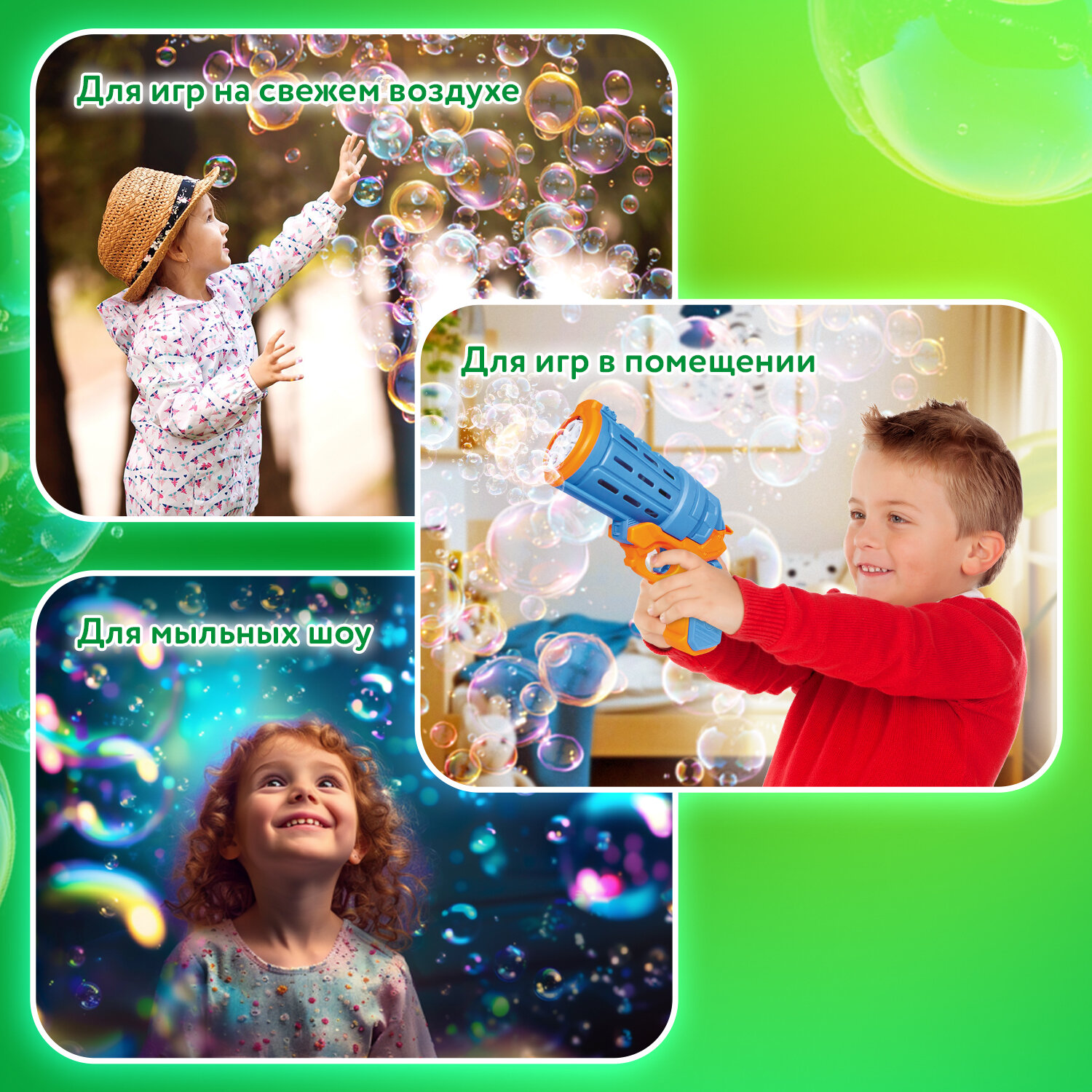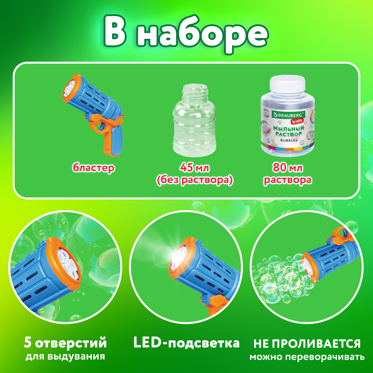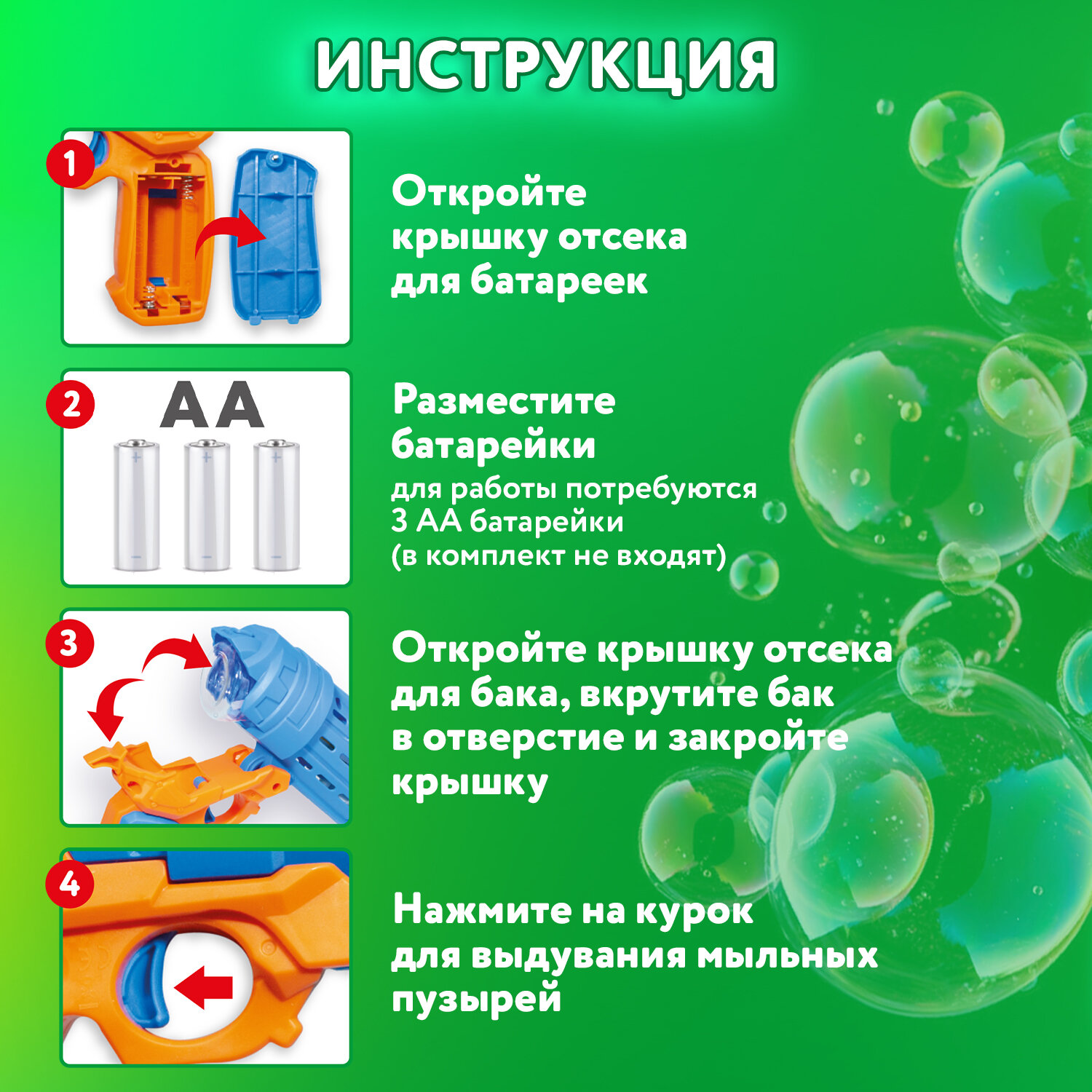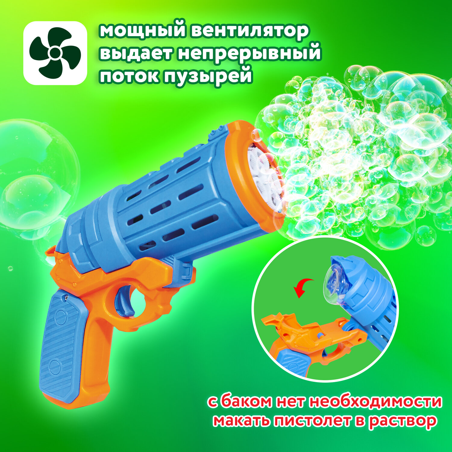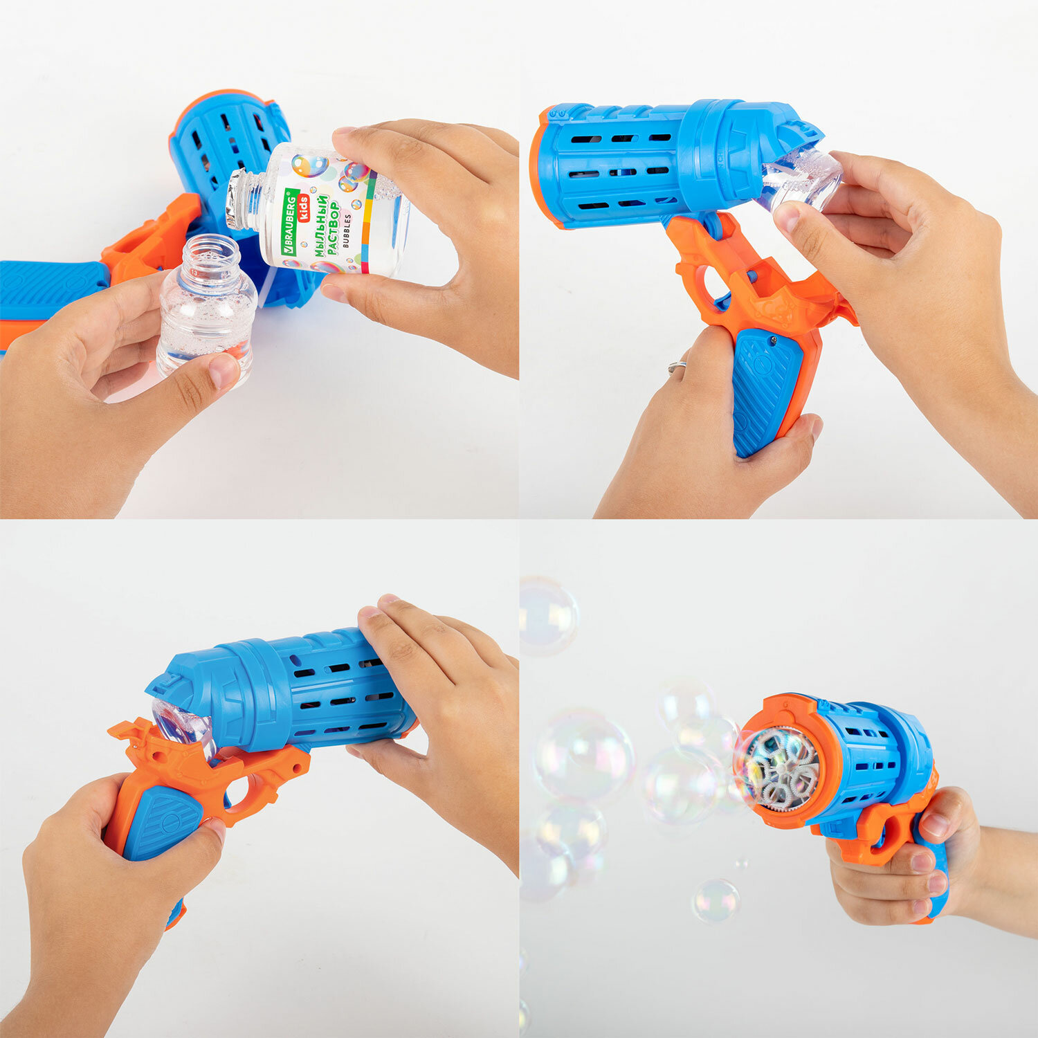 5. Нажмите на курок и наслаждайтесь нескончаемым потоком разноцветных мыльных пузырей.