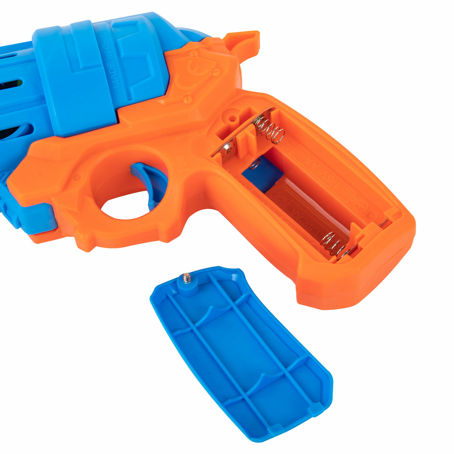 Бластер – генератор для выдувания мыльных пузырей с подсветкой. Работает от батареек. Прилагается 2 декоративных пластиковых бака и мыльный раствор объемом 80 мл. После нажатия на кнопку происходит выдувание целого каскада разноцветных мыльных пузырей. Для работы потребуются 3 АА батарейки (в комплект не входят).