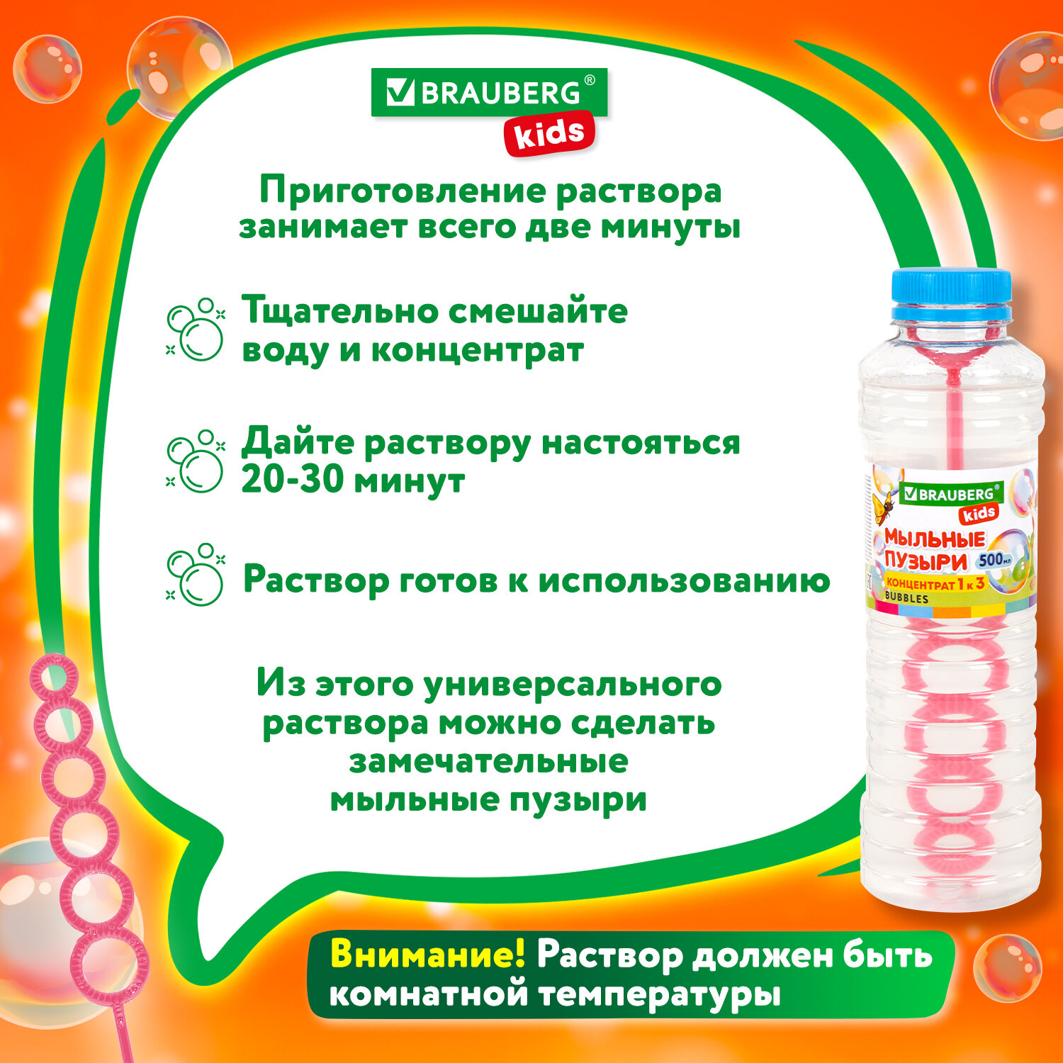 О товаре «Мыльные пузыри, КОНЦЕНТРАТ, 500 мл, индивидуальная упаковка, BRAUBERG KIDS, 666209»