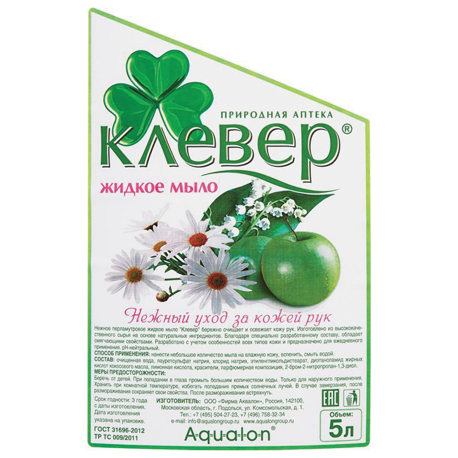 Нежное жидкое мыло КЛЕВЕР бережно очищает кожу рук. Мягкая моющая формула на основе натуральных ингредиентов увлажняет, питает и успокаивает кожу, защищает от сухости. При регулярном использовании мыла «Клевер» кожа рук всегда будет нежной и ухоженной. Наряду с высоким качеством и потребительскими свойствами, продукт имеет невысокую цену. Лучшее соотношение цена/качество.