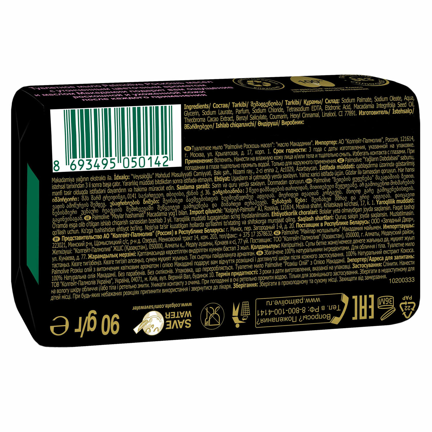 Состав: натриевые соли жирных кислот пальмоядрового масла, животного жира и красного пальмового масла; вода; стеариновая кислота; глицерин; отдушка;
