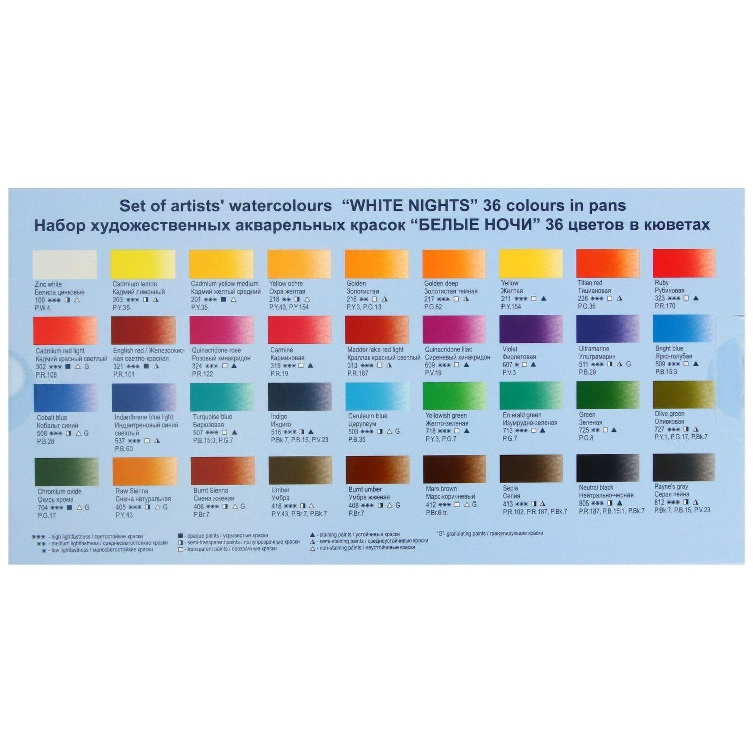 Краски акварельные Белые ночи набор 36 цветов по 2.5 мл в кюветах с палитрой