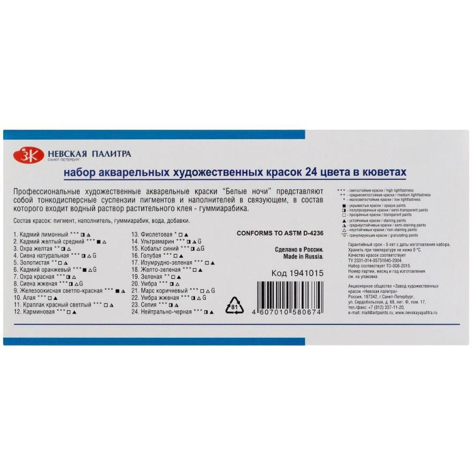 Краски акварельные Белые ночи набор 24 цвета по 2.5 мл в кюветах